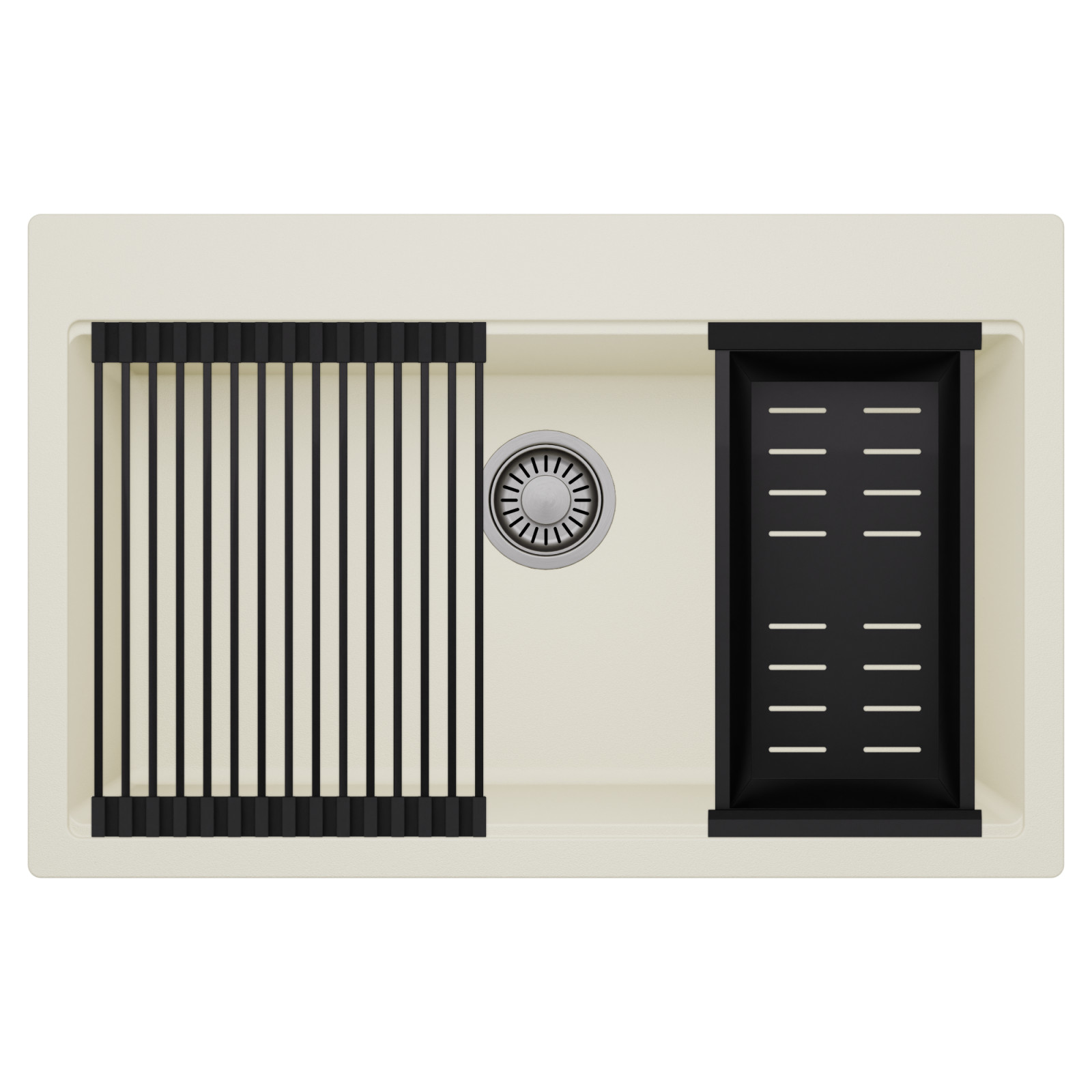 HD Infinity White 78 egymedencés mosogatótálca szett, csepegtetőráccsal és kosárral, tört fehér