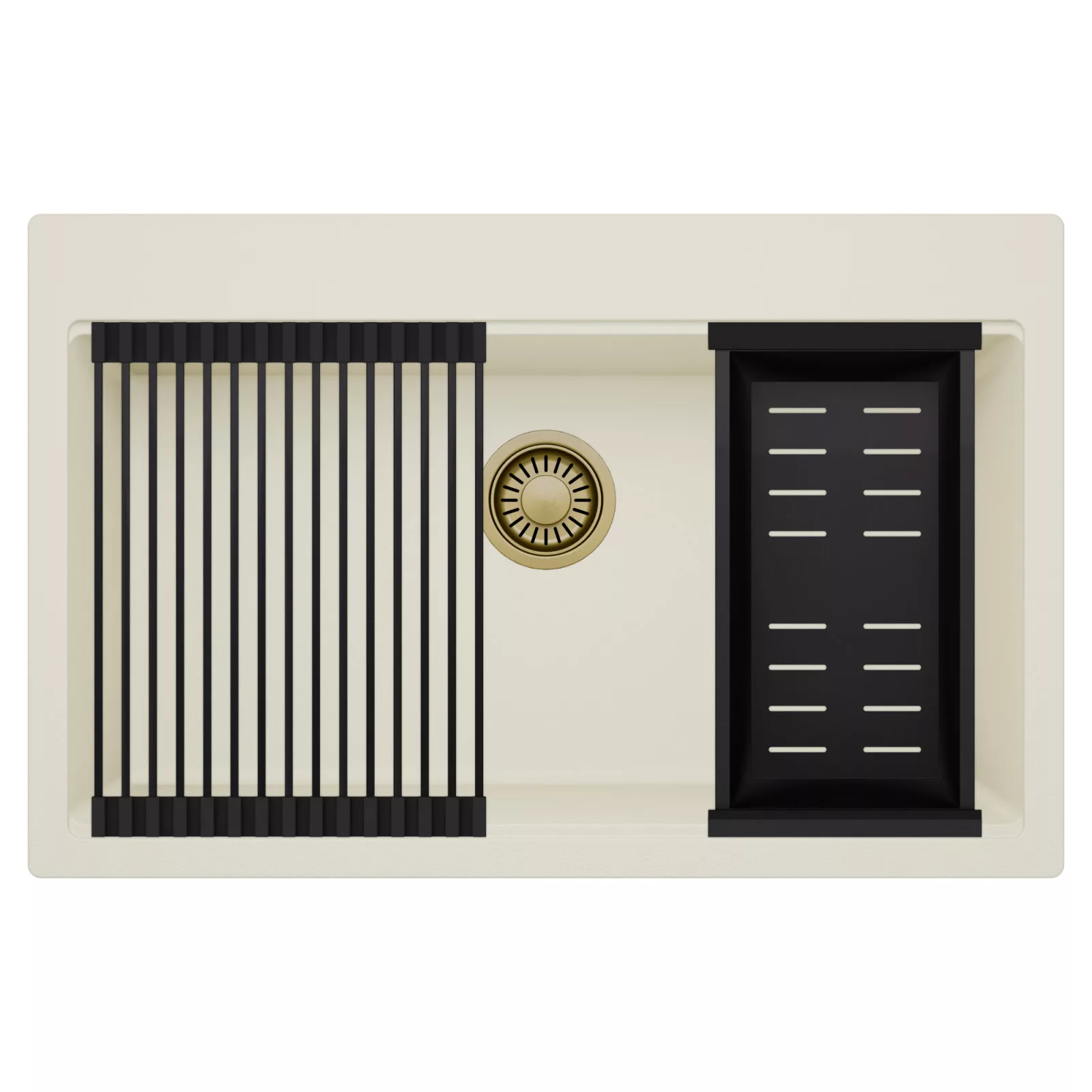 HD Infinity White 78 egymedencés mosogatótálca szett, csepegtetőráccsal és kosárral, tört fehér
