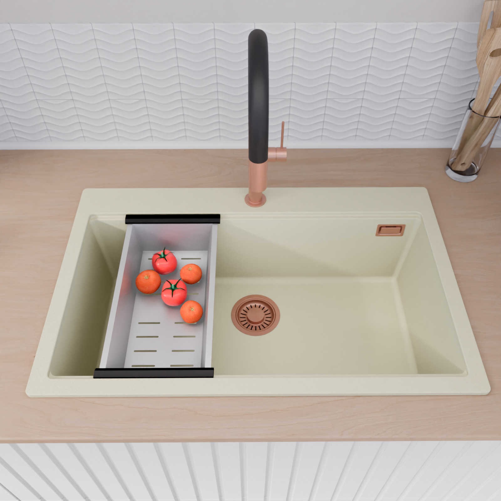 Mosogatónk magas természetes kőőrlemény-tartalmú gránit kompozitból készül, amely rendkívüli stabilitást és tartósságot biztosít. Az anyag ellenáll a magas hőmérsékletnek, a hirtelen hőingadozásoknak, valamint az ütéseknek és karcolásoknak is. Sima, zárt felülete könnyen tisztán tartható, ellenáll a foltosodásnak és az elszíneződéseknek, így hosszú éveken át megőrzi esztétikus megjelenését. Meggyőződésünk, hogy ezzel a gránit mosogatóval a mindennapi konyhai teendők kényelmesebbé és élvezetesebbé válnak.