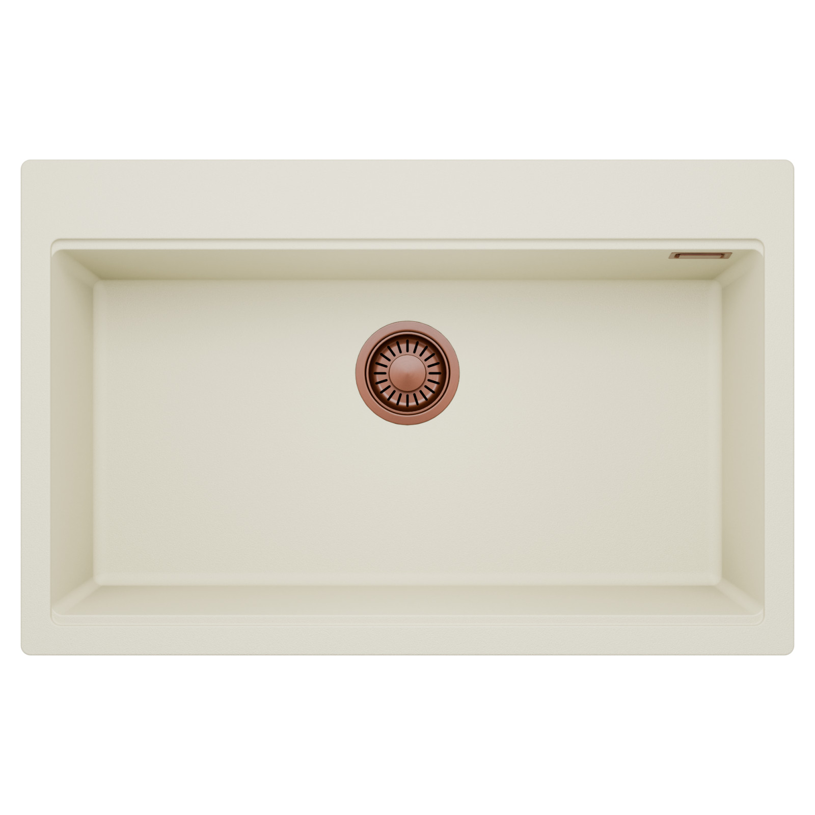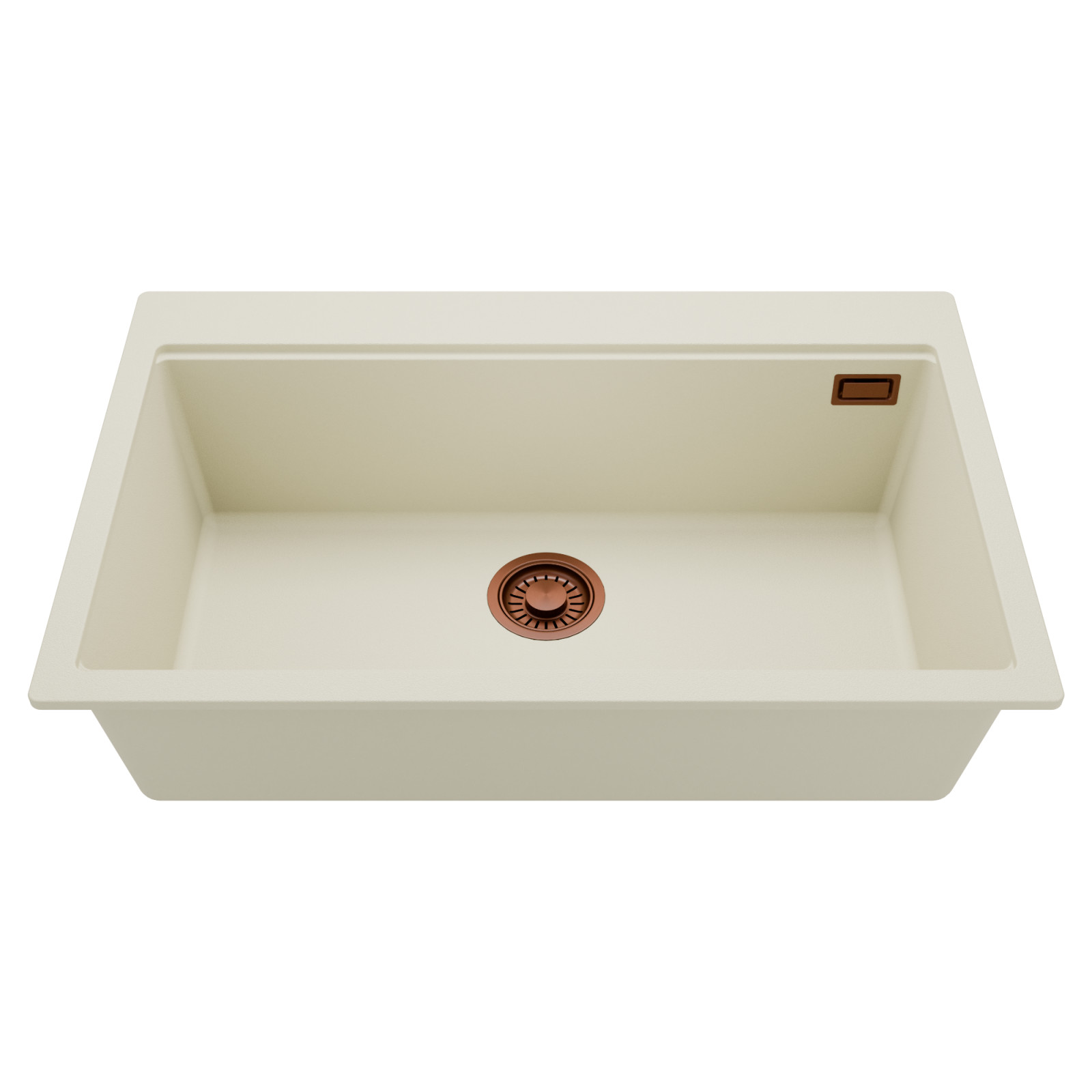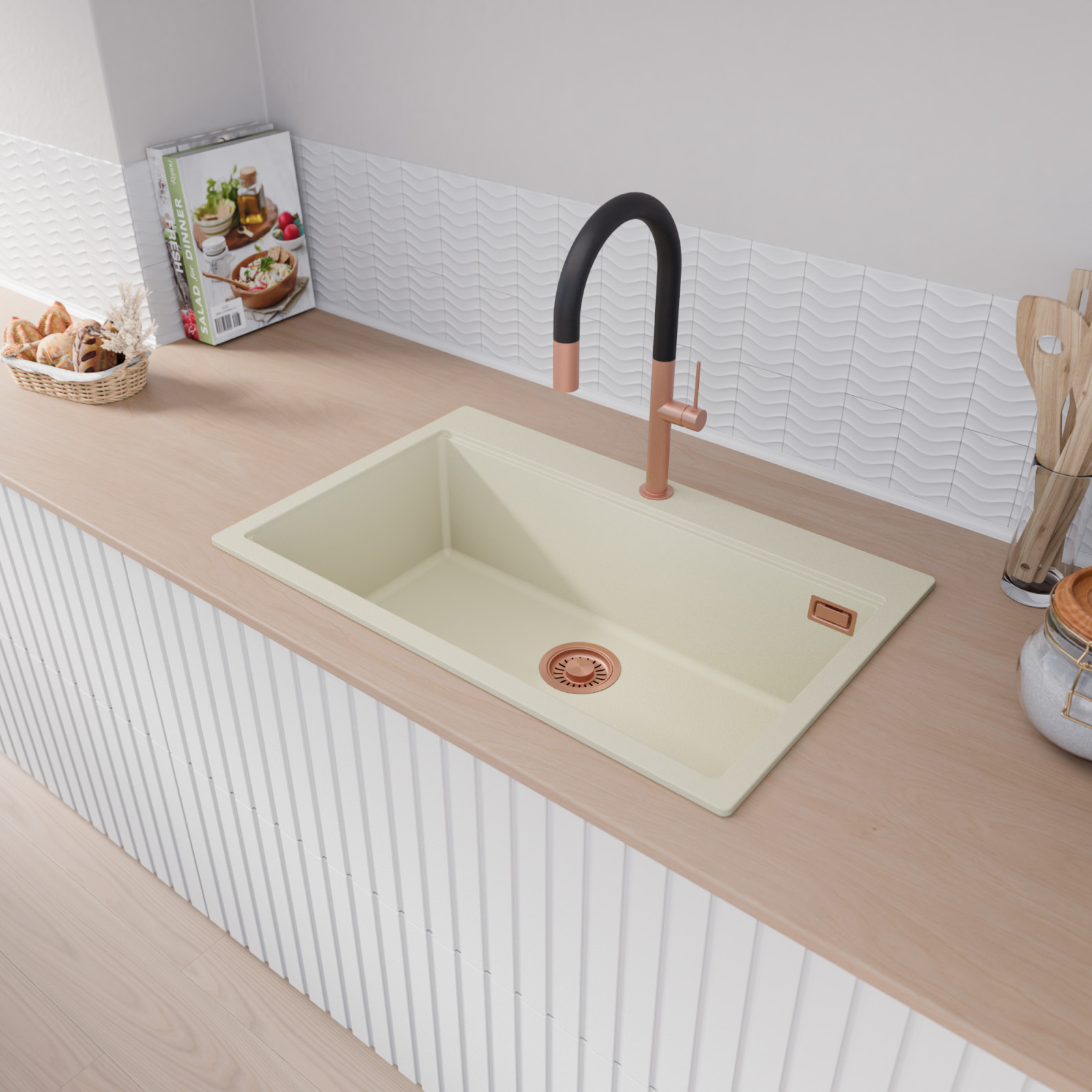 A mosogató prémium minőségű gránit kompozitból készült, amely kiváló ellenállást biztosít a mindennapi használat során keletkező karcolásokkal szemben. A strapabíró gránit felület hosszú távon is megőrzi esztétikus megjelenését, így a mosogató intenzív igénybevétel mellett is megmarad újszerű állapotában.