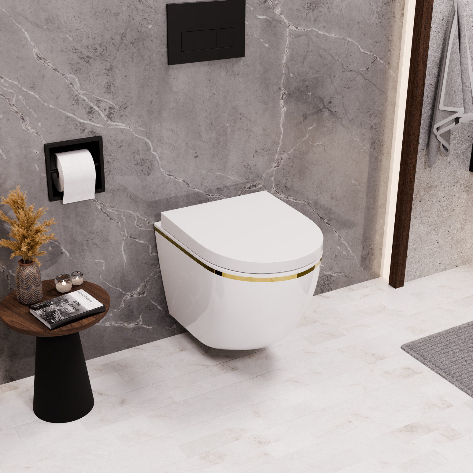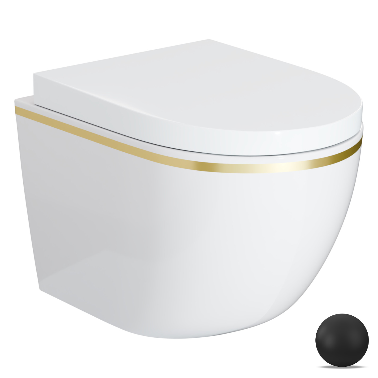 HD Lea Gold-Stripe perem nélküli mély öblítésű íves fali WC compact "A" tetővel és matt fekete zsanérral