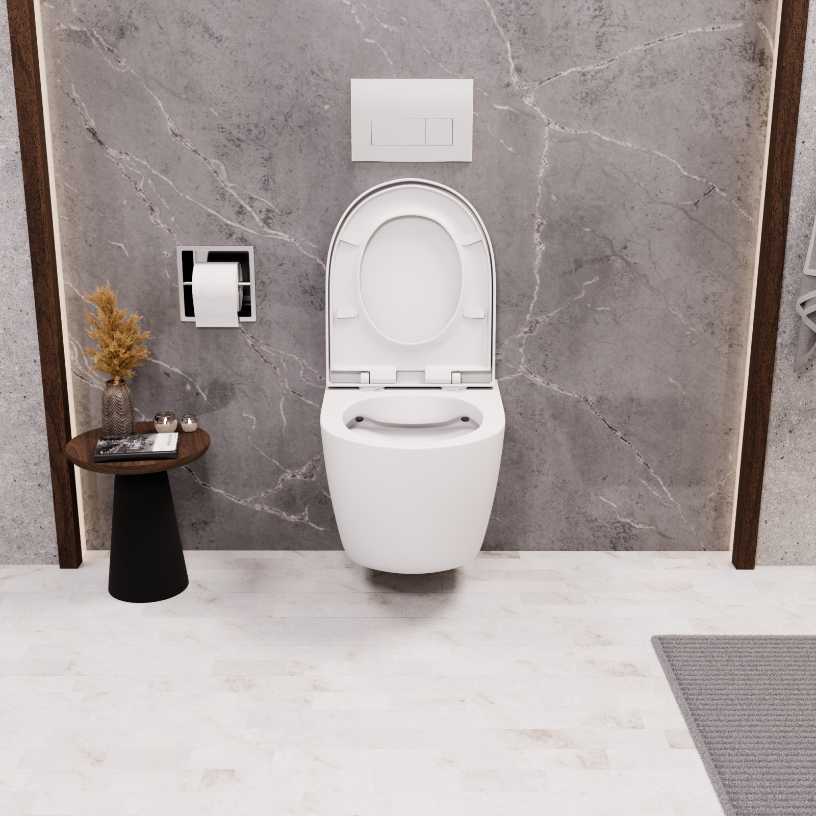 HD Lea Matt White perem nélküli mély öblítésű íves fali WC compact "A" tetővel és matt fehér zsanérral