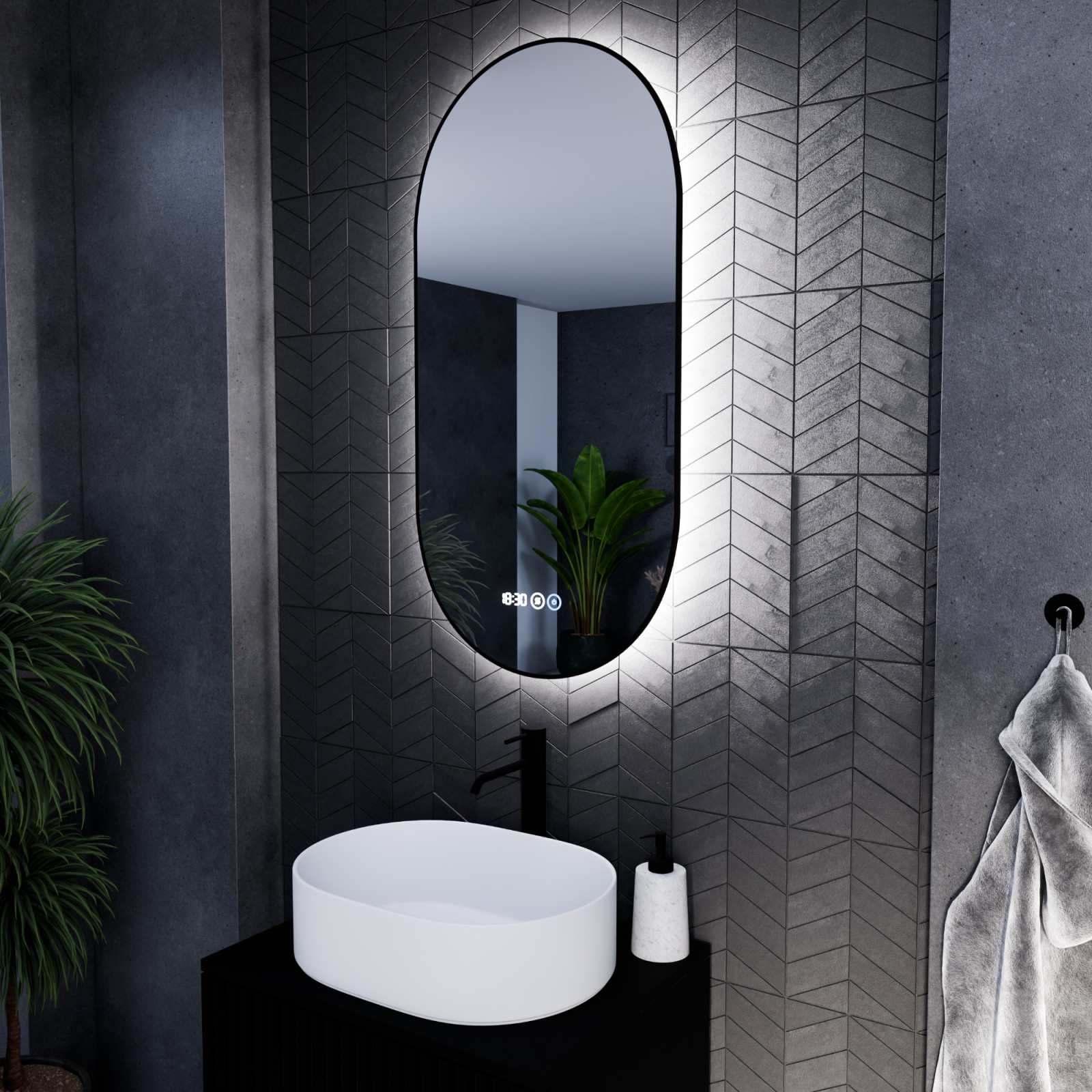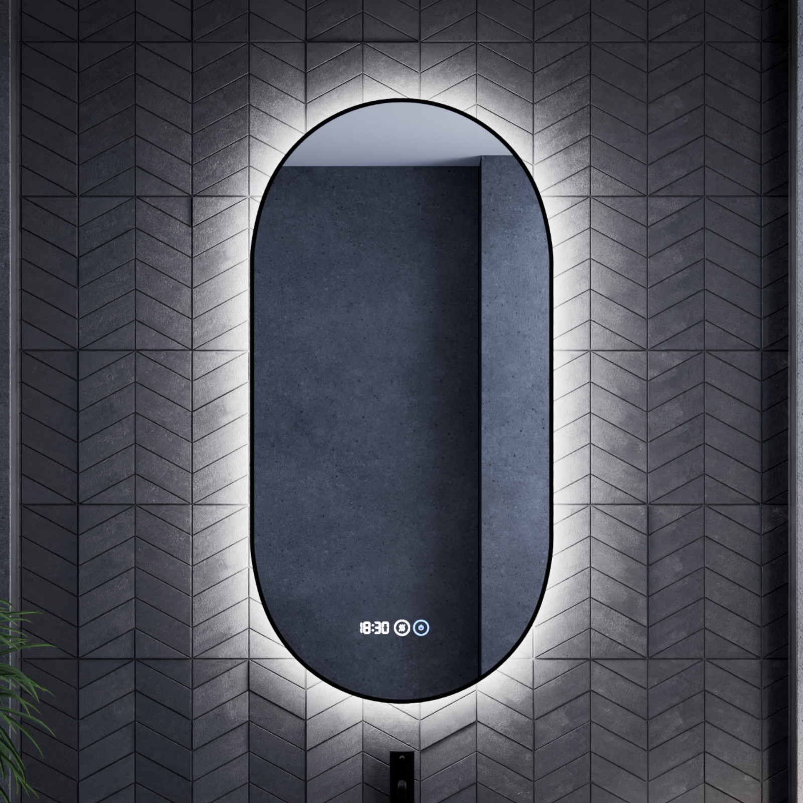 A Light fali ovális LED okos tükör elemei: