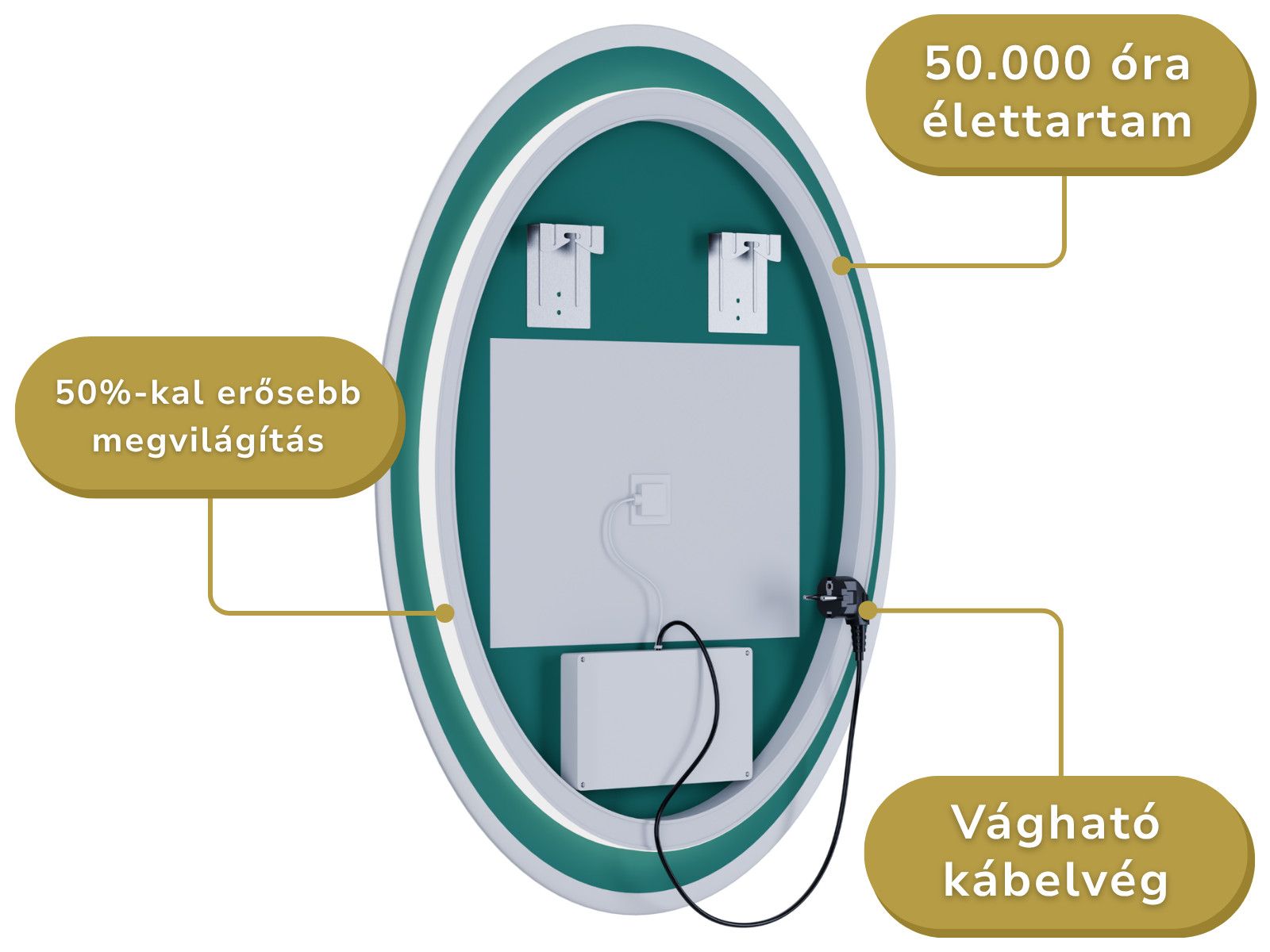 Light 50 fali ovális LED okostükör