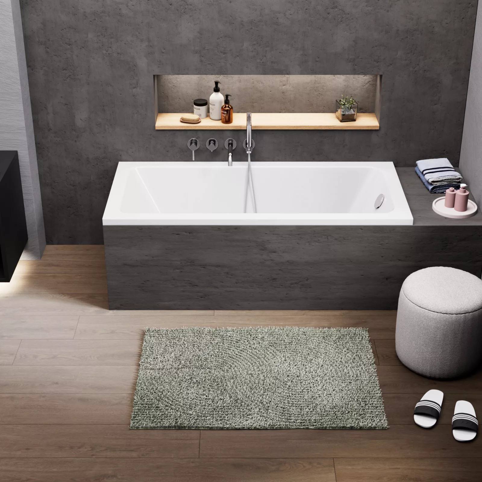 A fürdőkádjaink sokrétű módon felhasználhatóak: burkolható, lábra szerelhető, valamint padlóba süllyeszthető. A fürdőkádhoz tartozó elő és/vagy oldallap könnyedén felhelyezhető.