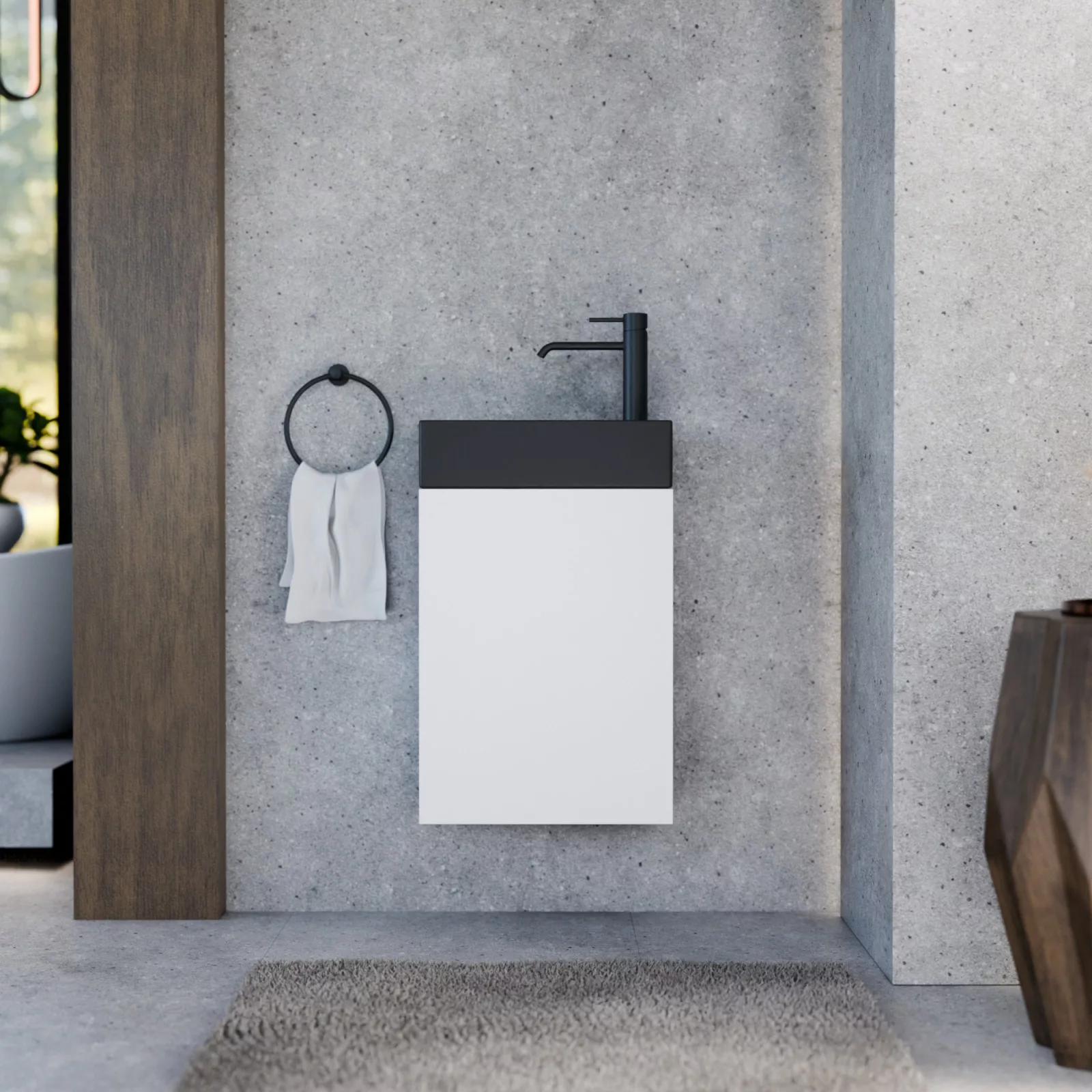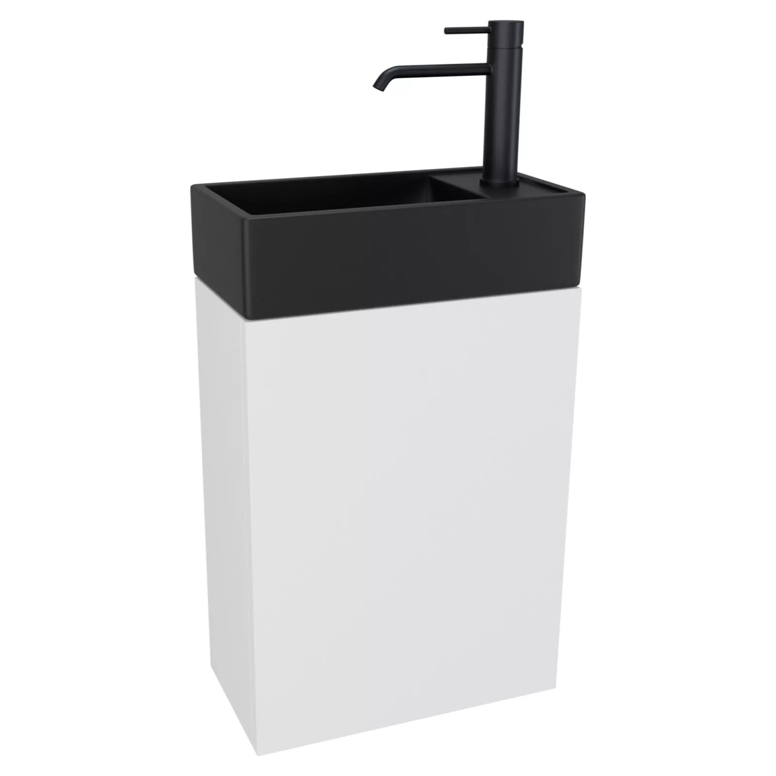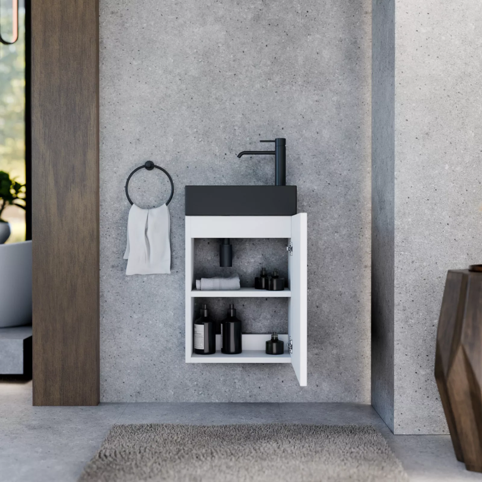 HD Lyon Matt White 40 fali mosdószekrény, matt fehér színben, matt fekete kerámia mosdóval