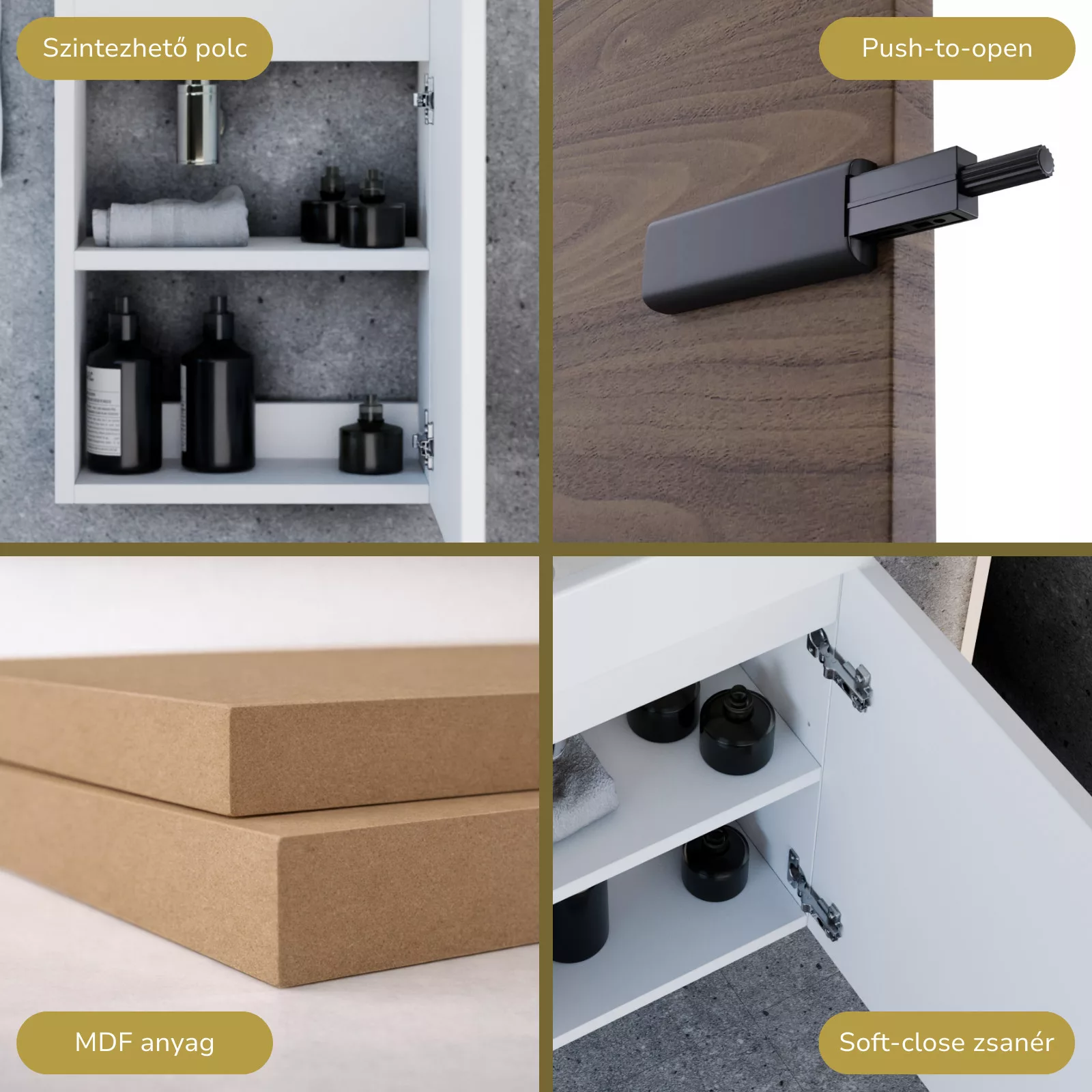 Saját márkás termékeink kialakítása során figyelembe vettük az elmúlt évek fogasztói igényeit, ezek alapján alkottuk meg a magas elvárásoknak megfelelő mosdószekrényünket.