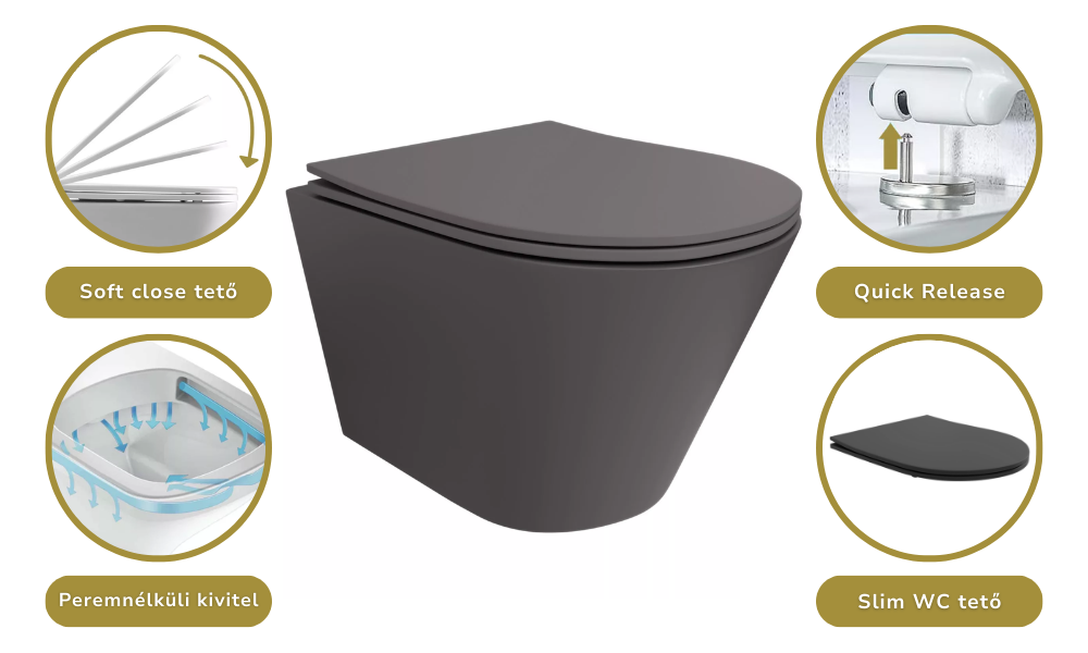• matt antracit íves WC csésze