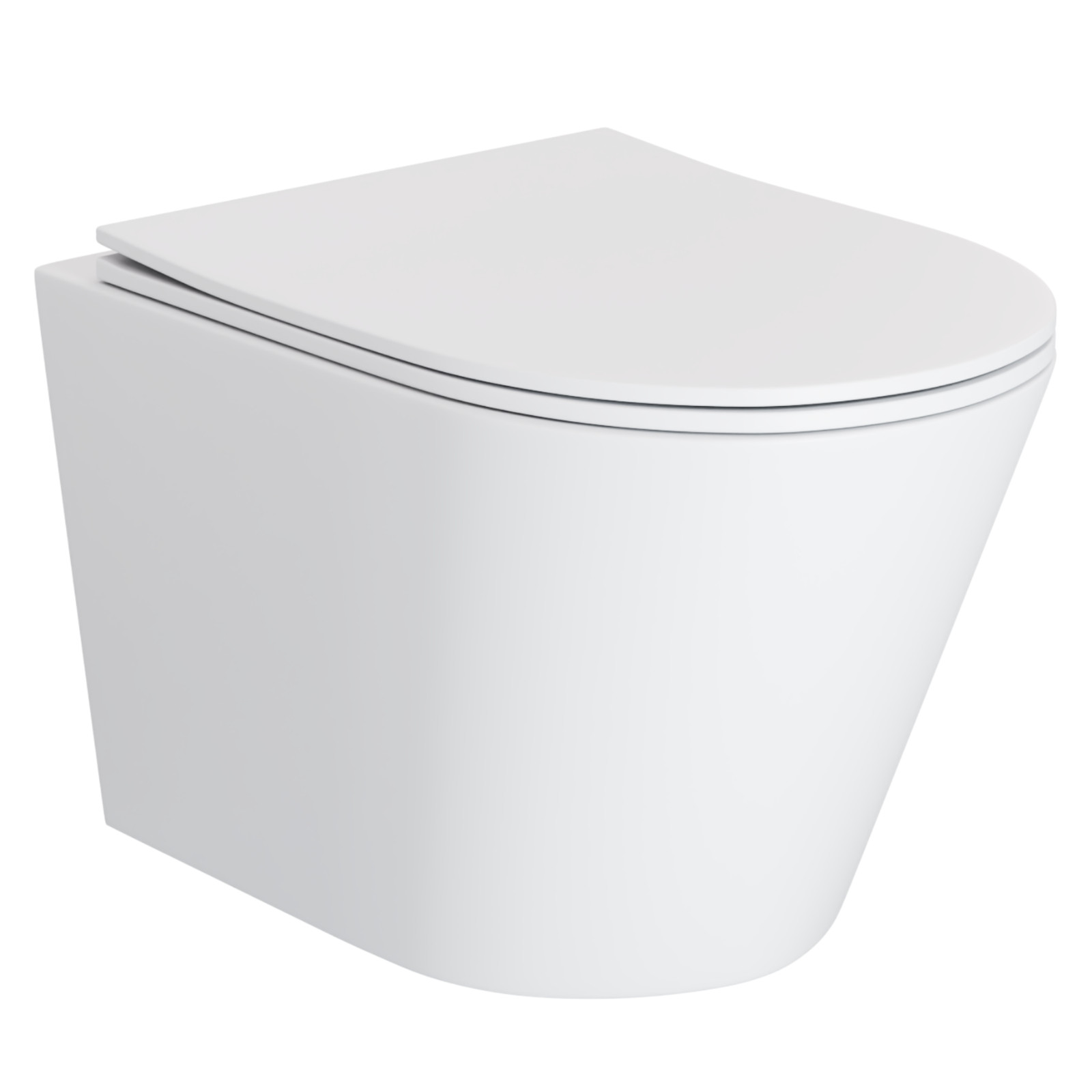 HD Madrid Matt White perem nélküli mély öblítésű íves fali WC slim "P" tetővel és matt fehér zsanérral