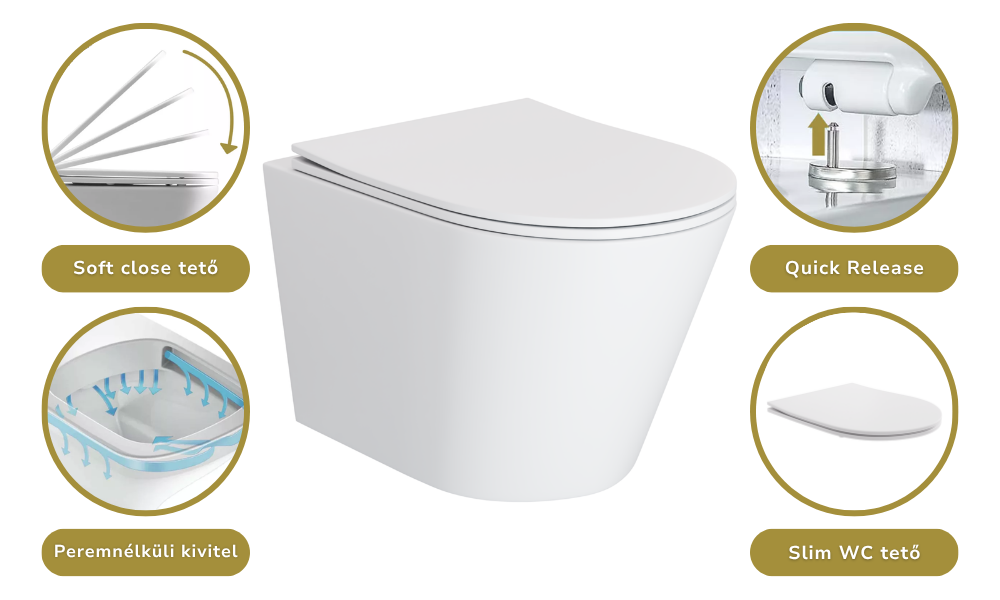 • WC szerelhetősége: Falra szerelhető (rejtett rögzítésű)
