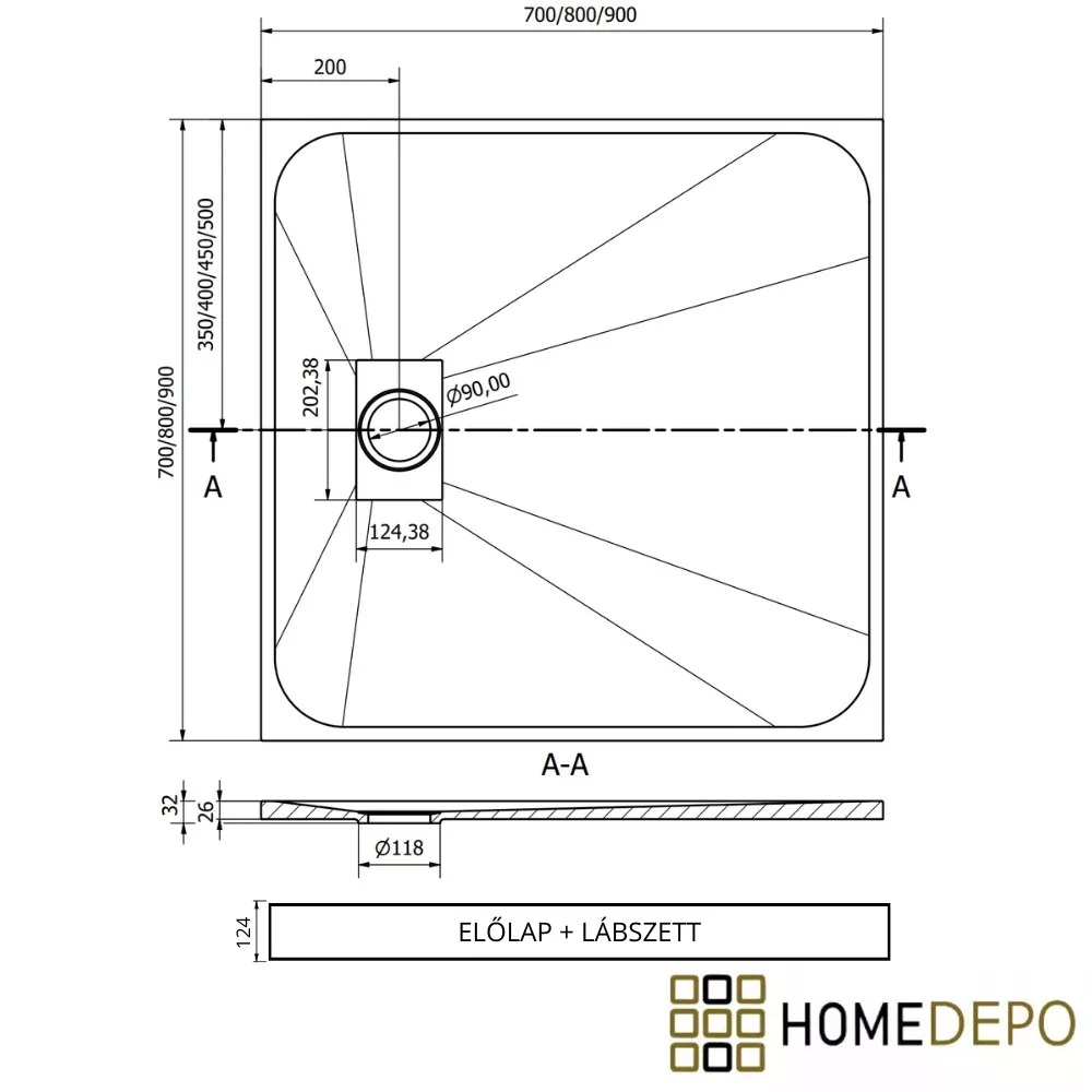 - Zuhanytálca szélesség: 90 cm