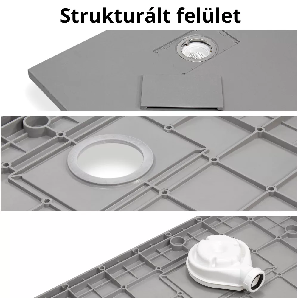 - Tartozékok: SMC kőhatású zuhanytálca, színazonos kőhatású SMC lefolyó takarófedél, vágható előlap, lábszett