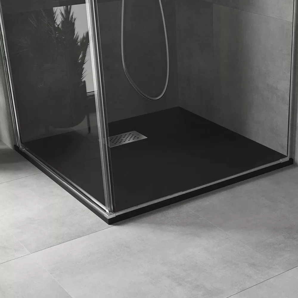 HD Marco Black 80x80 szögletes SMC zuhanytálca krómozott zuhanylefolyó ráccsal