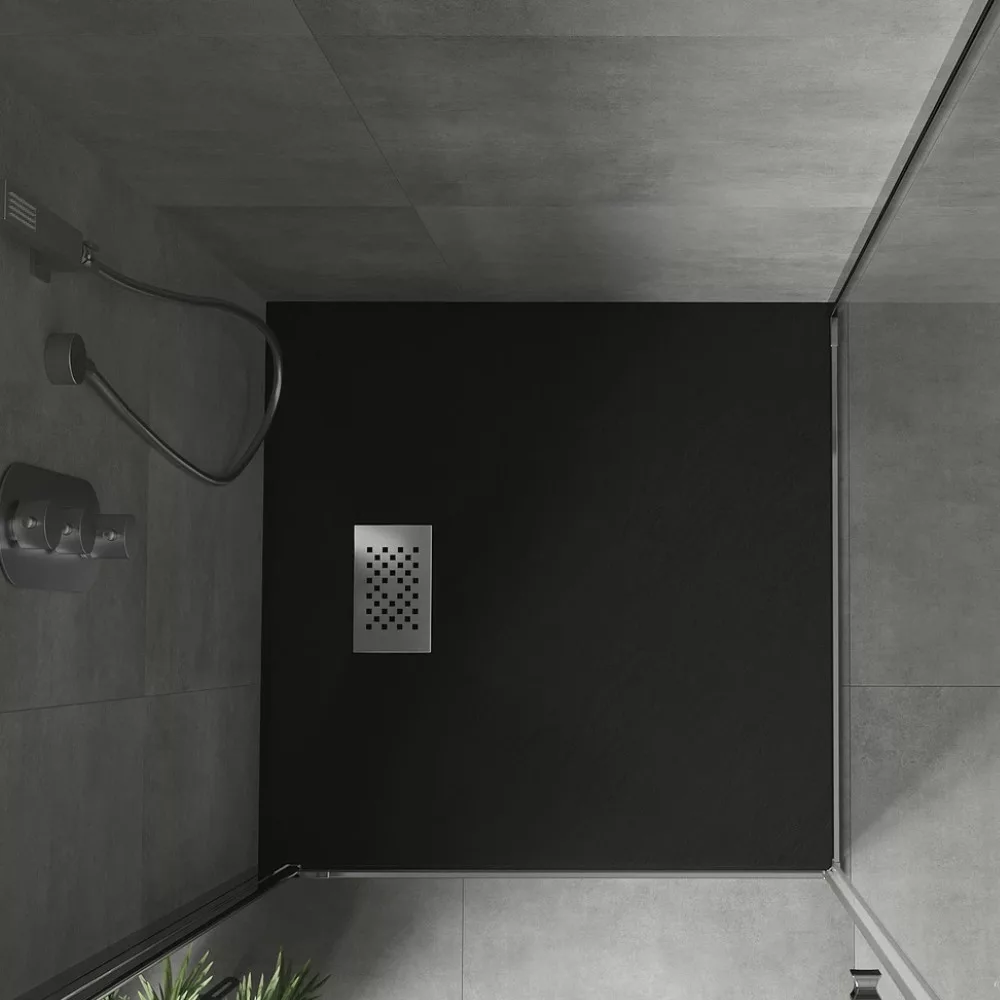 HD Marco Black 80x80 szögletes SMC zuhanytálca krómozott zuhanylefolyó ráccsal