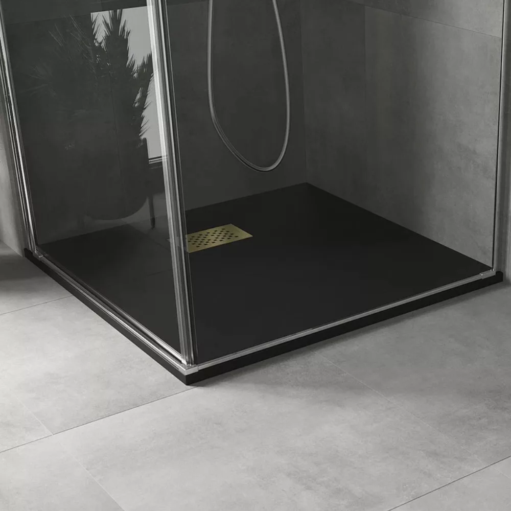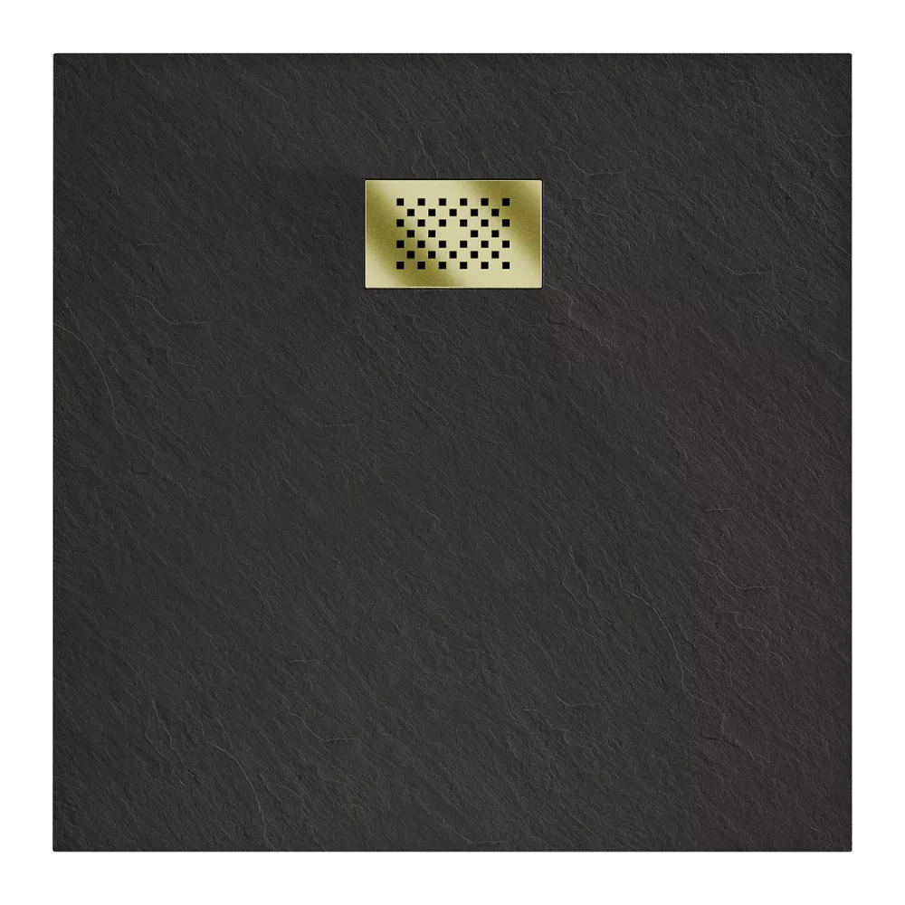HD Marco Black 80x80 szögletes SMC zuhanytálca arany színű zuhanylefolyó ráccsal