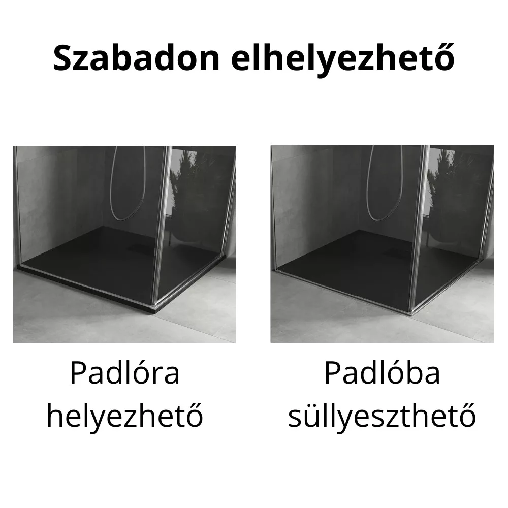 - Tartozékok: SMC kőhatású zuhanytálca, fekete zuhanylefolyó rács, színazonos kőhatású SMC lefolyó takarófedél