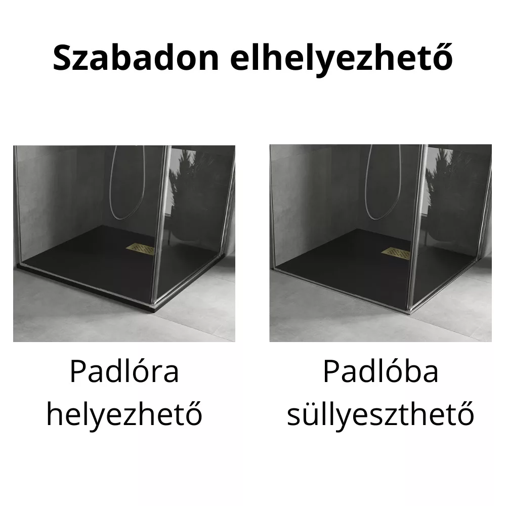HD Marco Black 90x90 szögletes SMC zuhanytálca arany színű zuhanylefolyó ráccsal