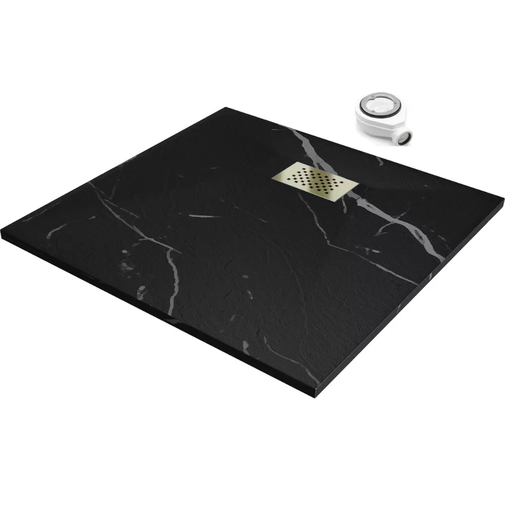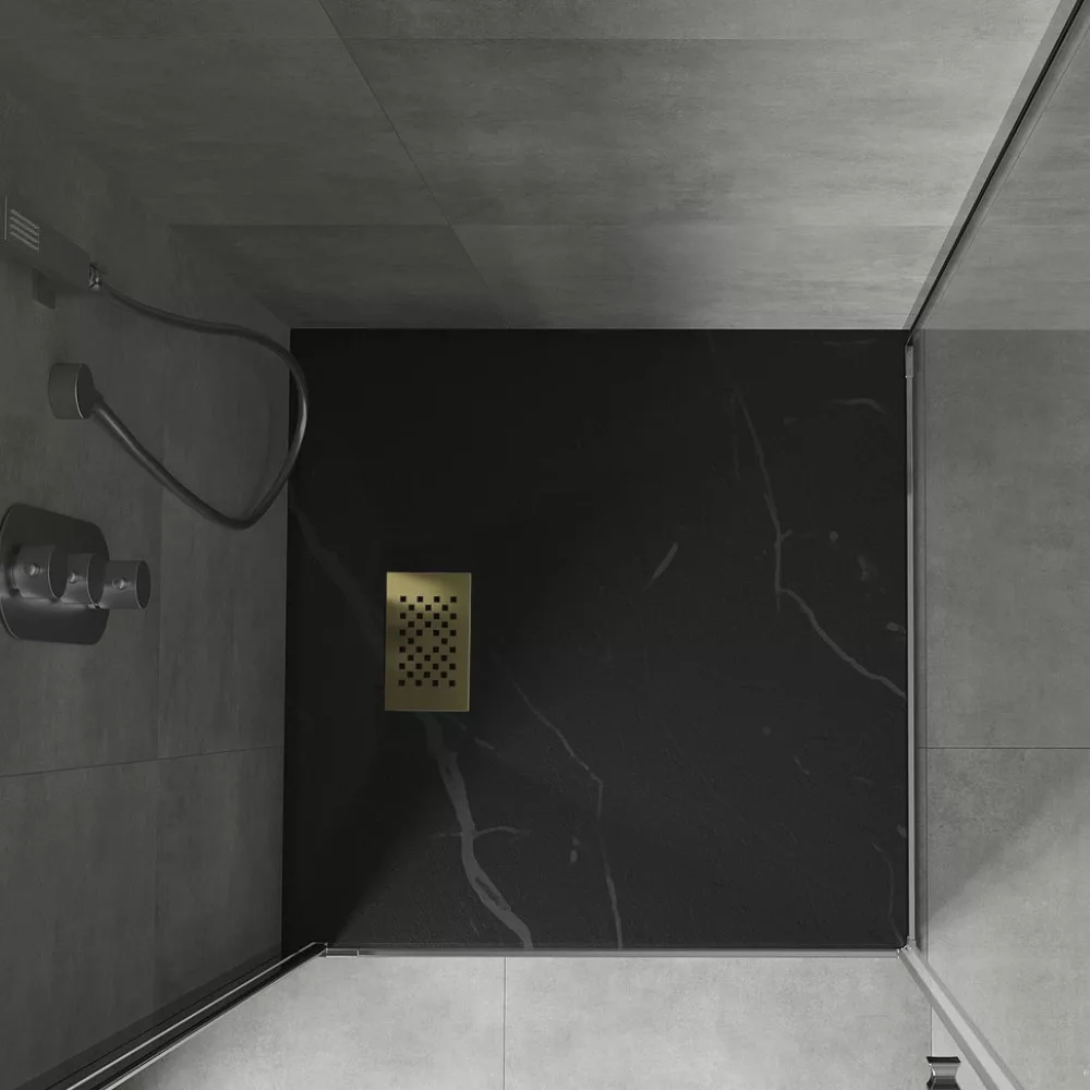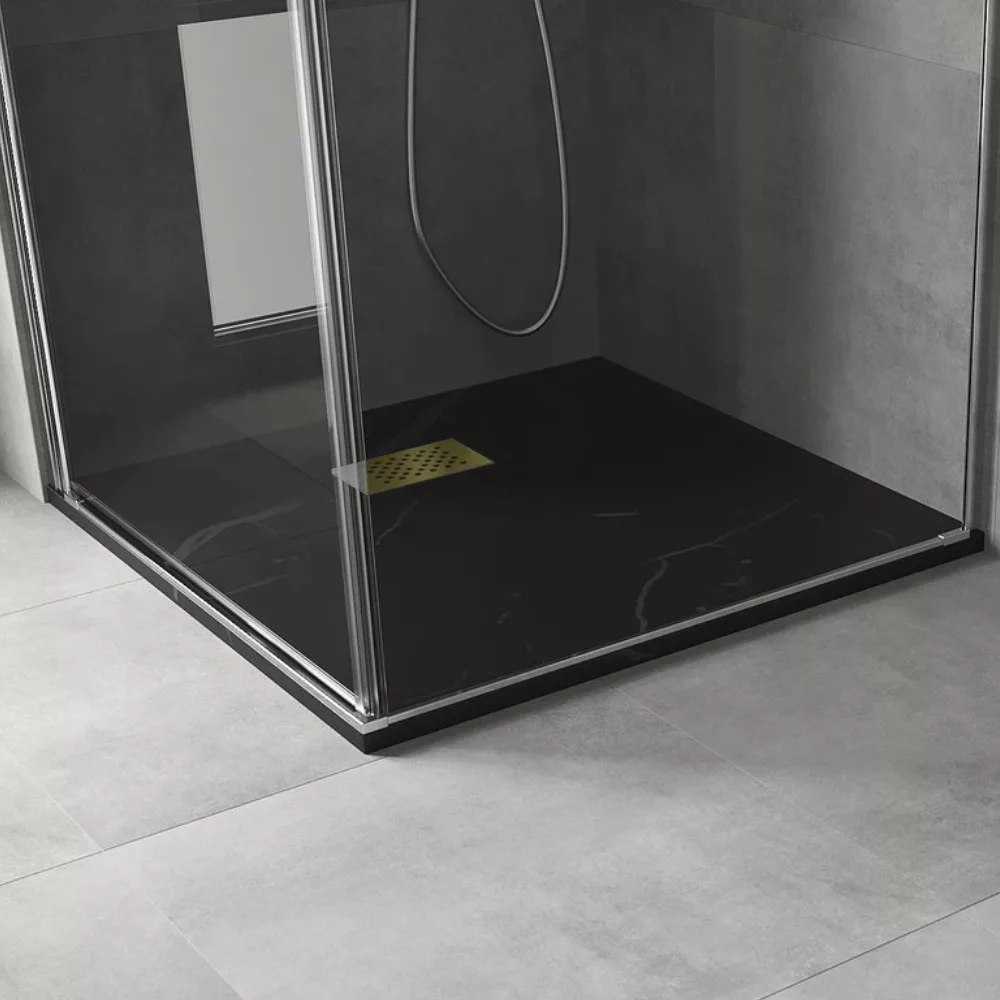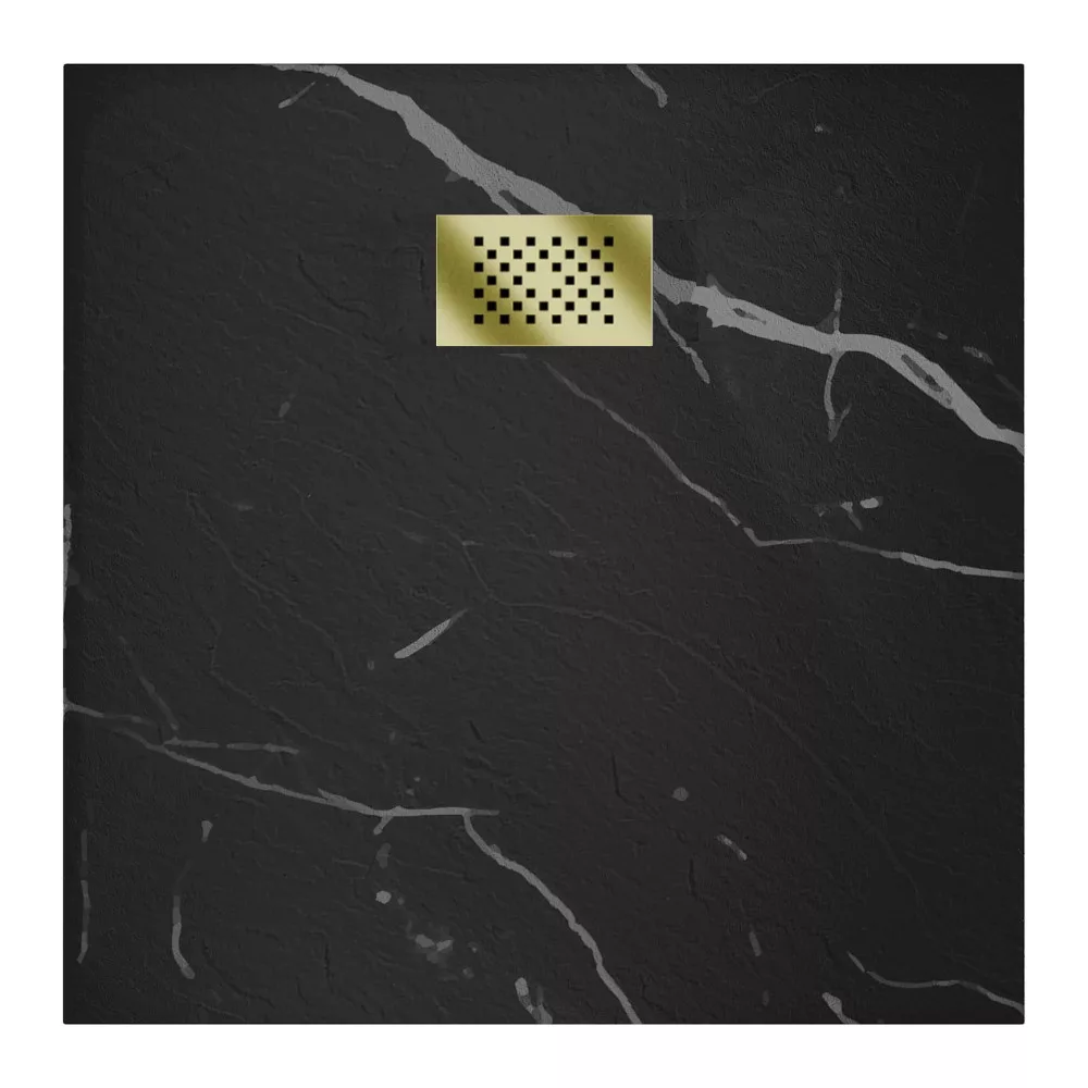HD Marco Black Marble 80x80 szögletes SMC zuhanytálca arany színű zuhanylefolyó ráccsal