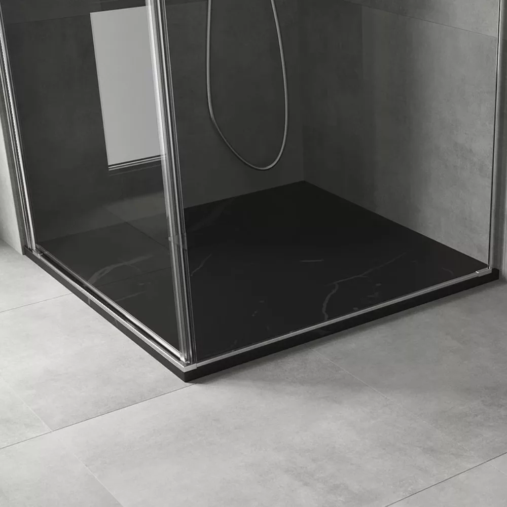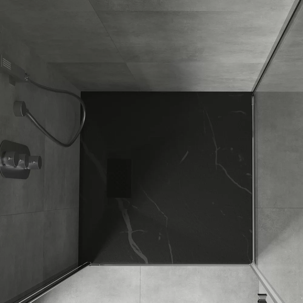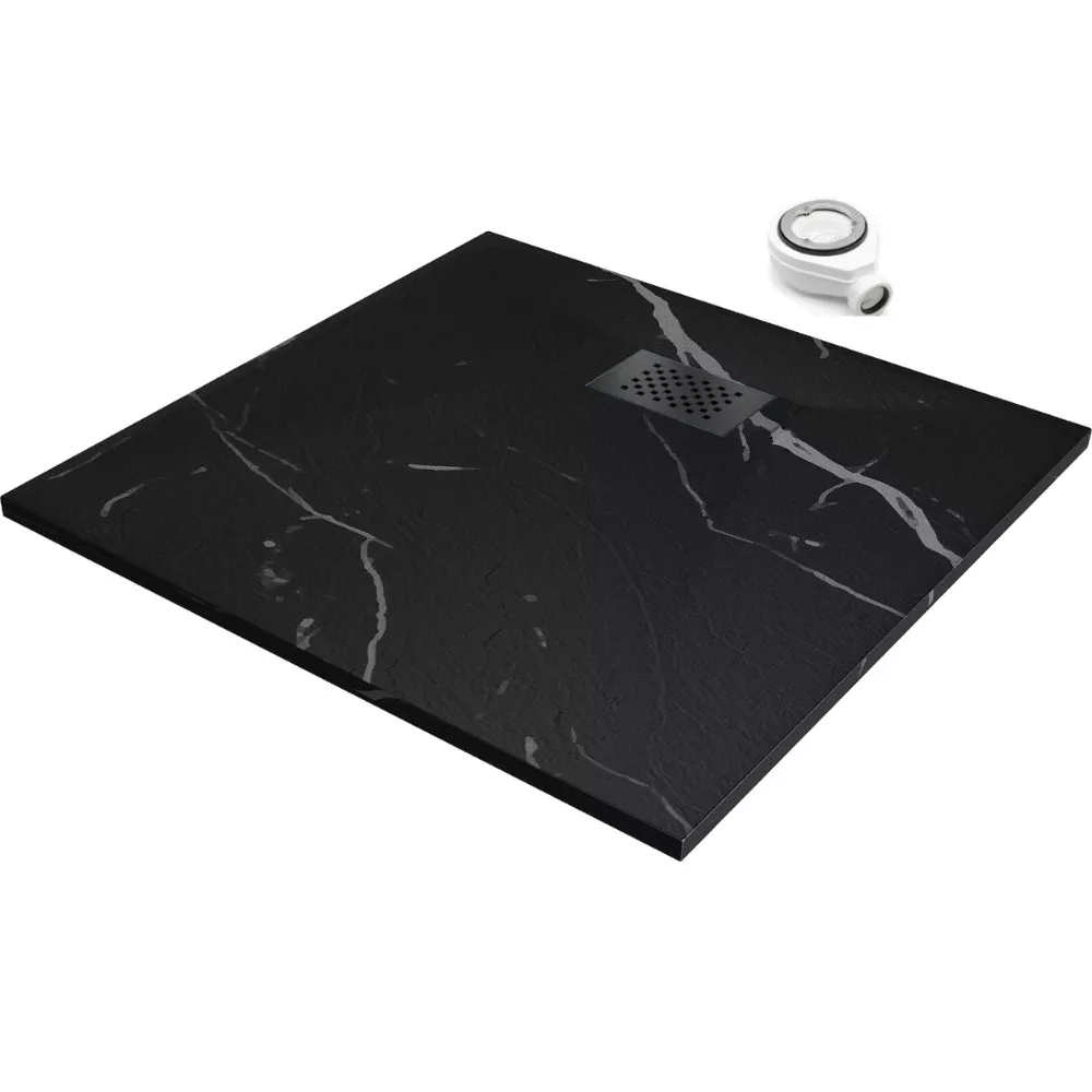 HD Marco Black Marble 80x80 szögletes SMC zuhanytálca fekete zuhanylefolyó ráccsal