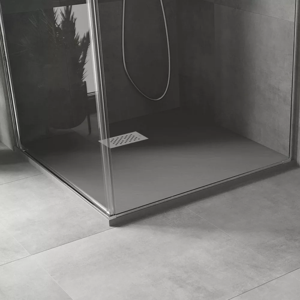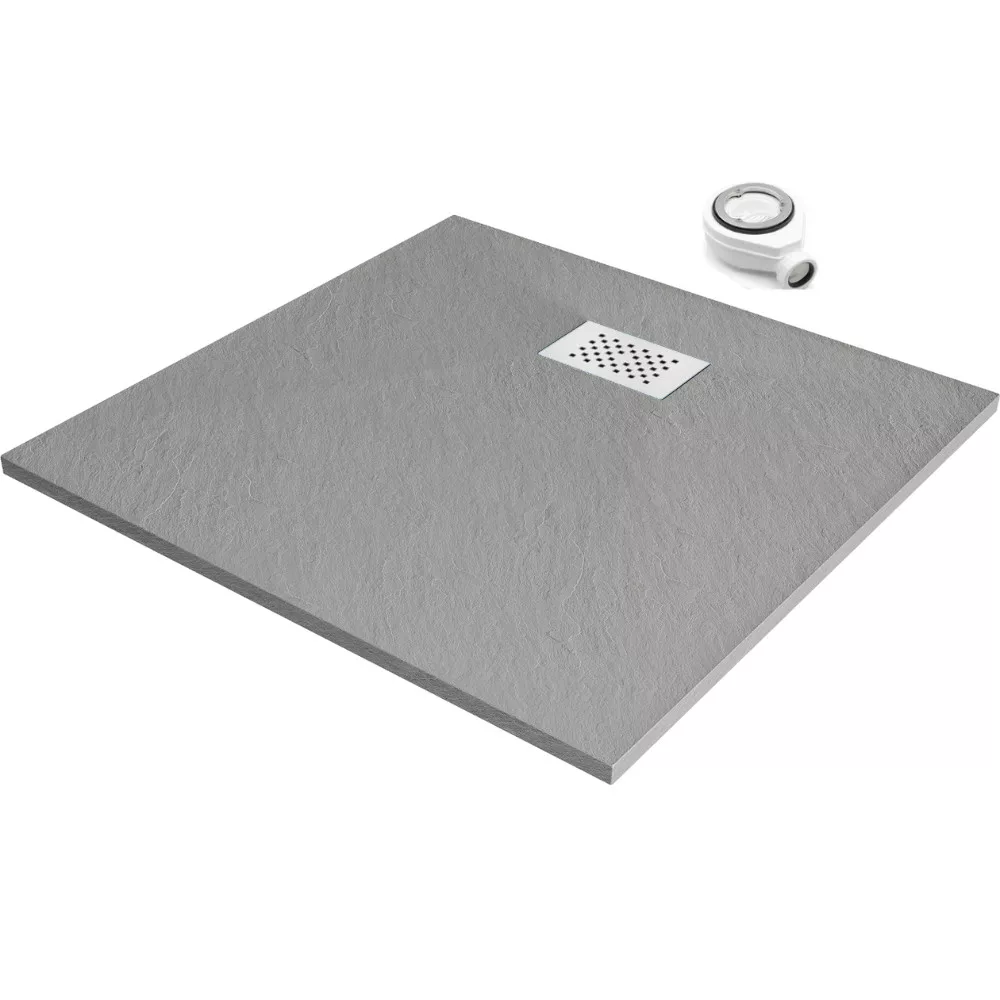 HD Marco Gray 80x80 szögletes SMC zuhanytálca fehér zuhanylefolyó ráccsal