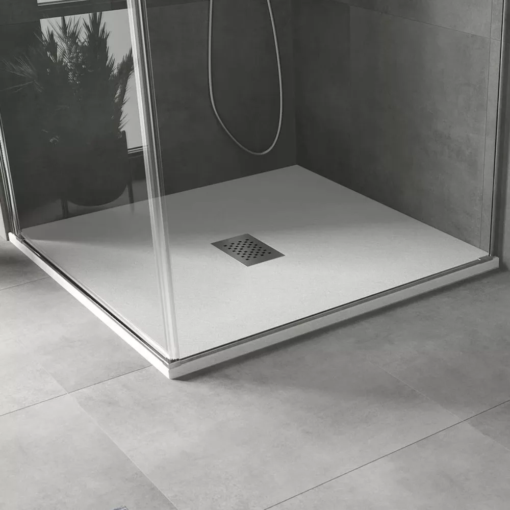 HD Marco White 100x100 szögletes SMC zuhanytálca krómozott zuhanylefolyó ráccsal