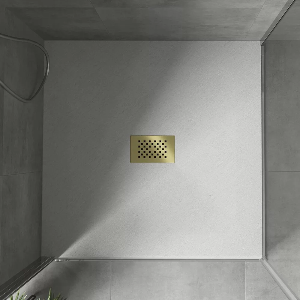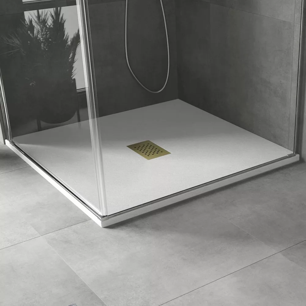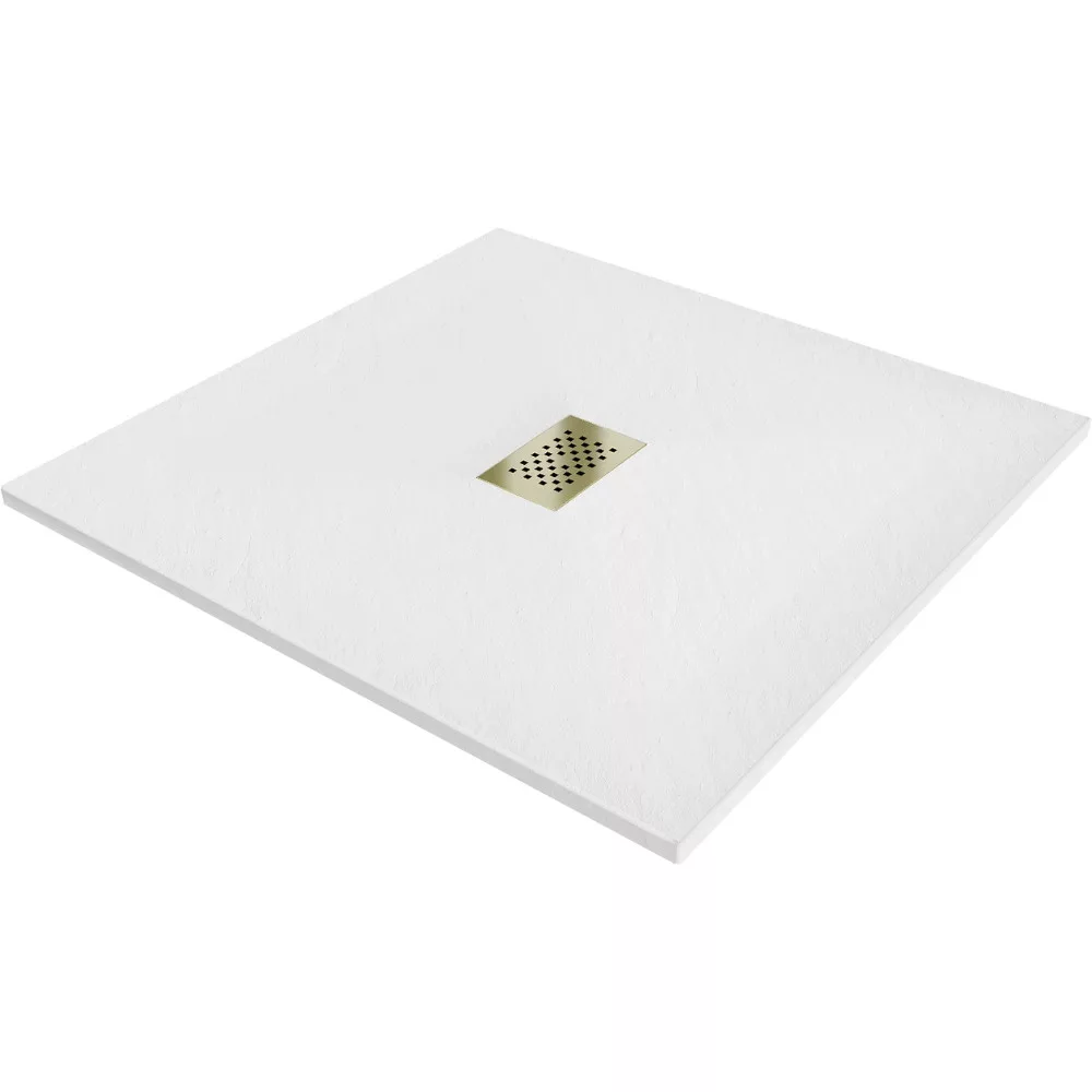 HD Marco White 100x100 szögletes SMC zuhanytálca arany színű zuhanylefolyó ráccsal