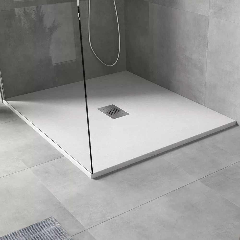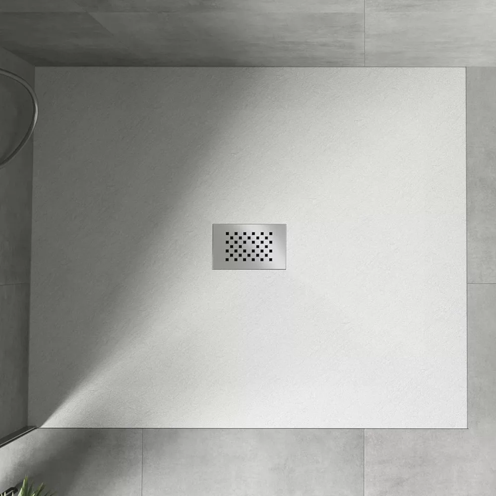 HD Marco White 100x110 szögletes SMC zuhanytálca krómozott zuhanylefolyó ráccsal