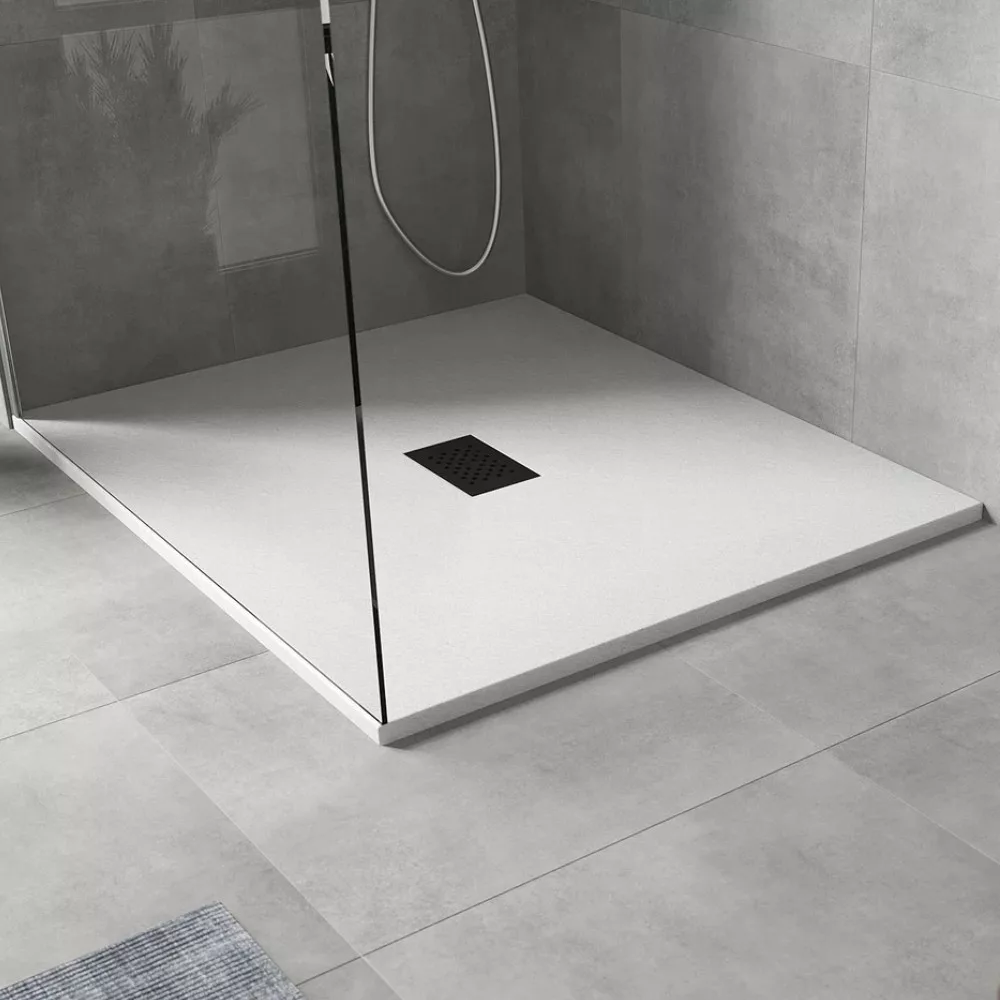 HD Marco White 110x100 szögletes SMC zuhanytálca fekete zuhanylefolyó ráccsal
