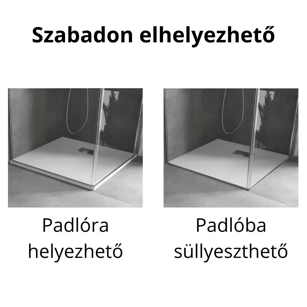- Tartozékok: SMC kőhatású zuhanytálca, krómozott zuhanylefolyó rács, színazonos kőhatású SMC lefolyó takarófedél