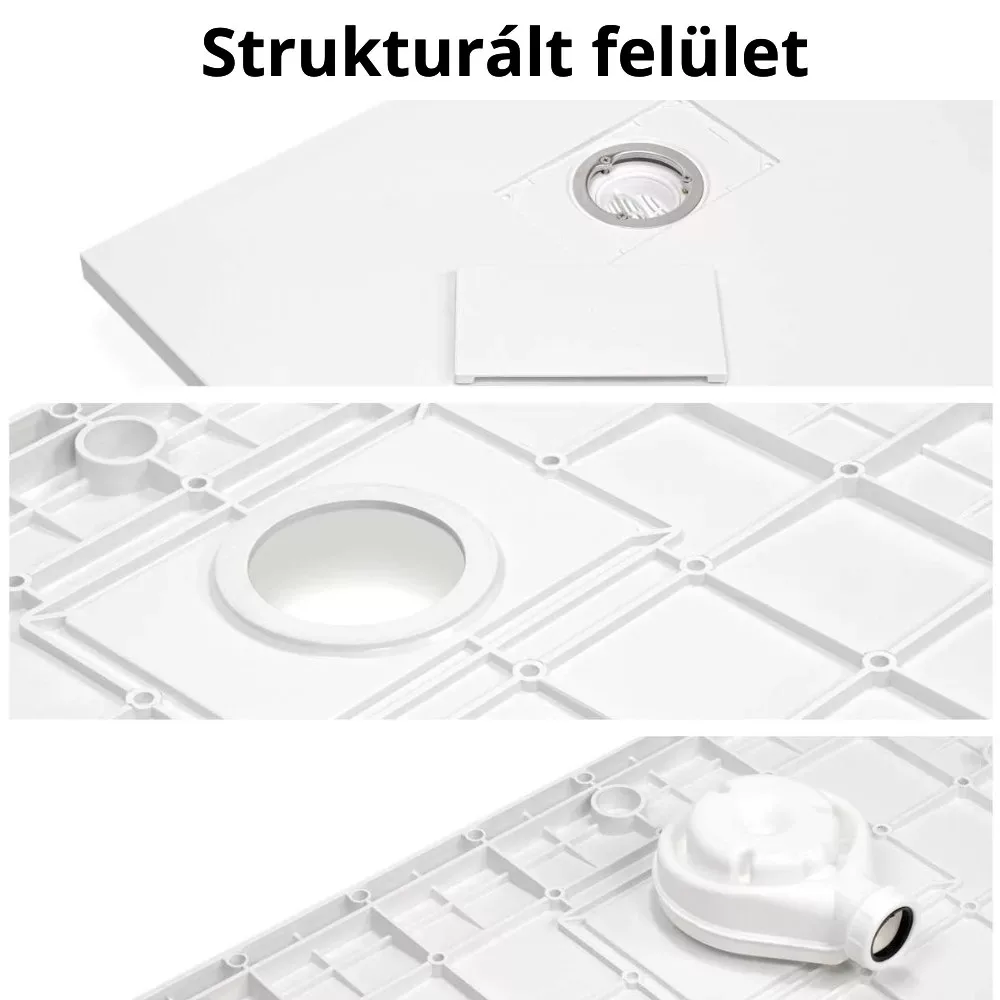 - Tartozékok: SMC kőhatású zuhanytálca, fekete zuhanylefolyó rács, színazonos kőhatású SMC lefolyó takarófedél, vágható előlap, lábszett