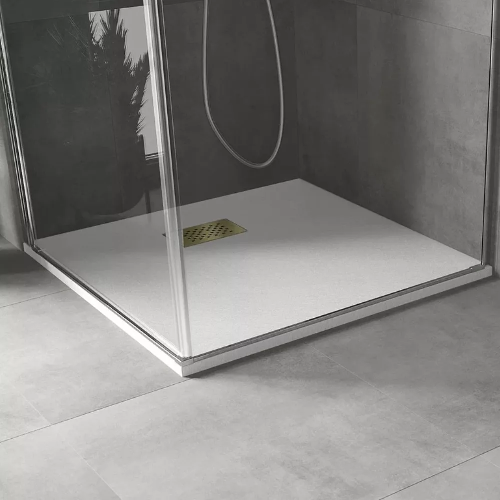 HD Marco White 70x70 szögletes SMC zuhanytálca arany színű zuhanylefolyó ráccsal