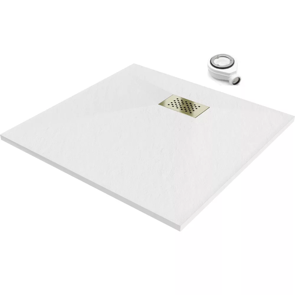 HD Marco White 70x70 szögletes SMC zuhanytálca arany színű zuhanylefolyó ráccsal