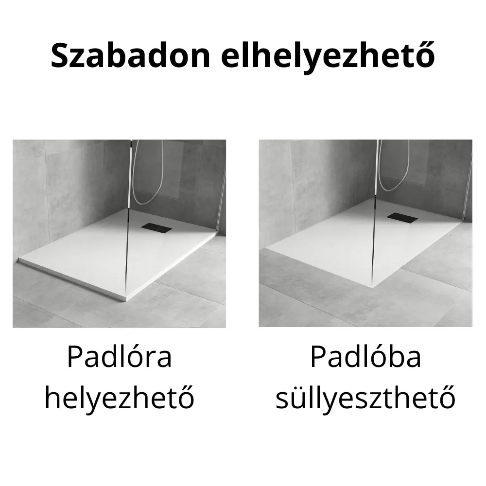 - Tartozékok: SMC kőhatású zuhanytálca, fekete zuhanylefolyó rács, színazonos kőhatású SMC lefolyó takarófedél