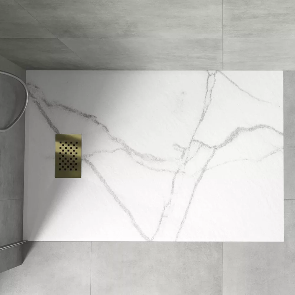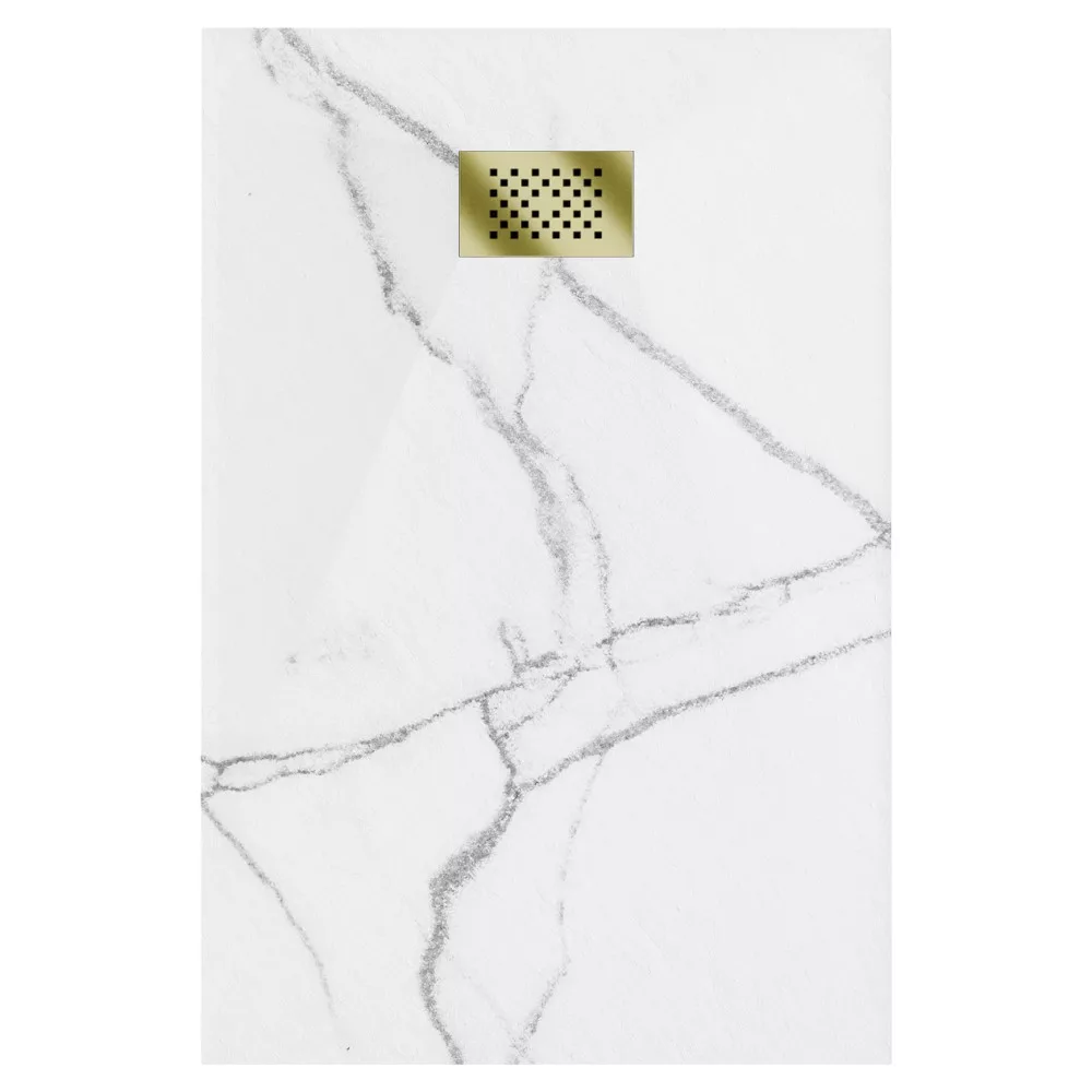 HD Marco White Marble 120x90 szögletes SMC zuhanytálca arany színű zuhanylefolyó ráccsal