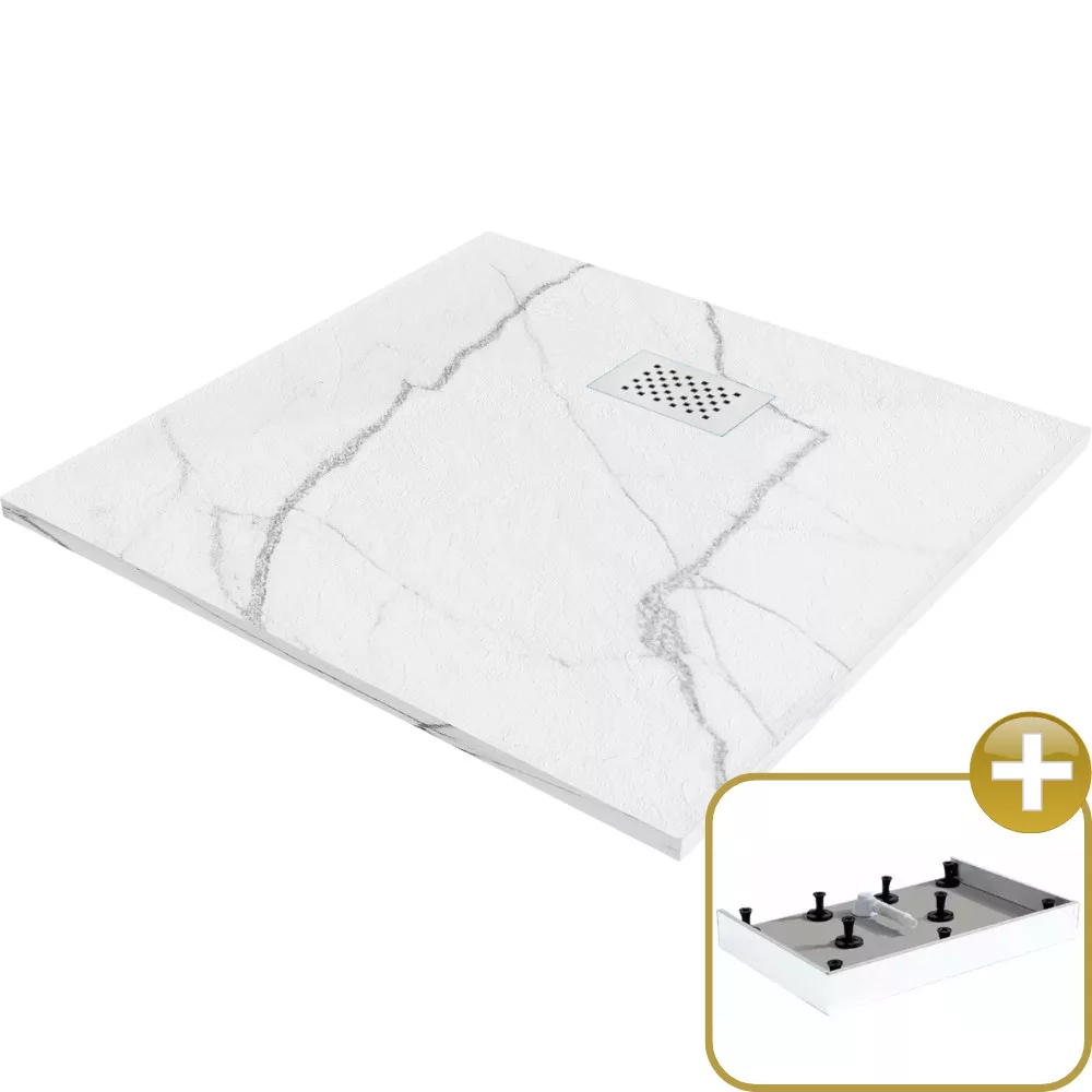 HD Marco White Marble 80x80 szögletes SMC zuhanytálca fehér zuhanylefolyó ráccsal