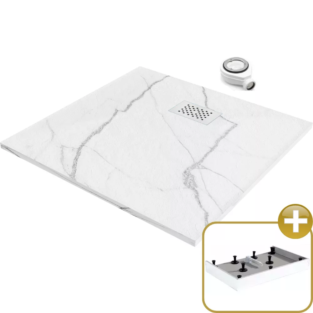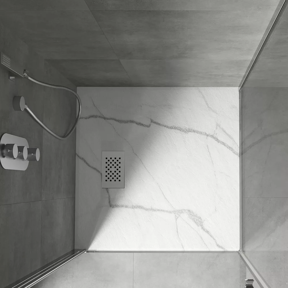HD Marco White Marble 80x80 szögletes SMC zuhanytálca fehér zuhanylefolyó ráccsal
