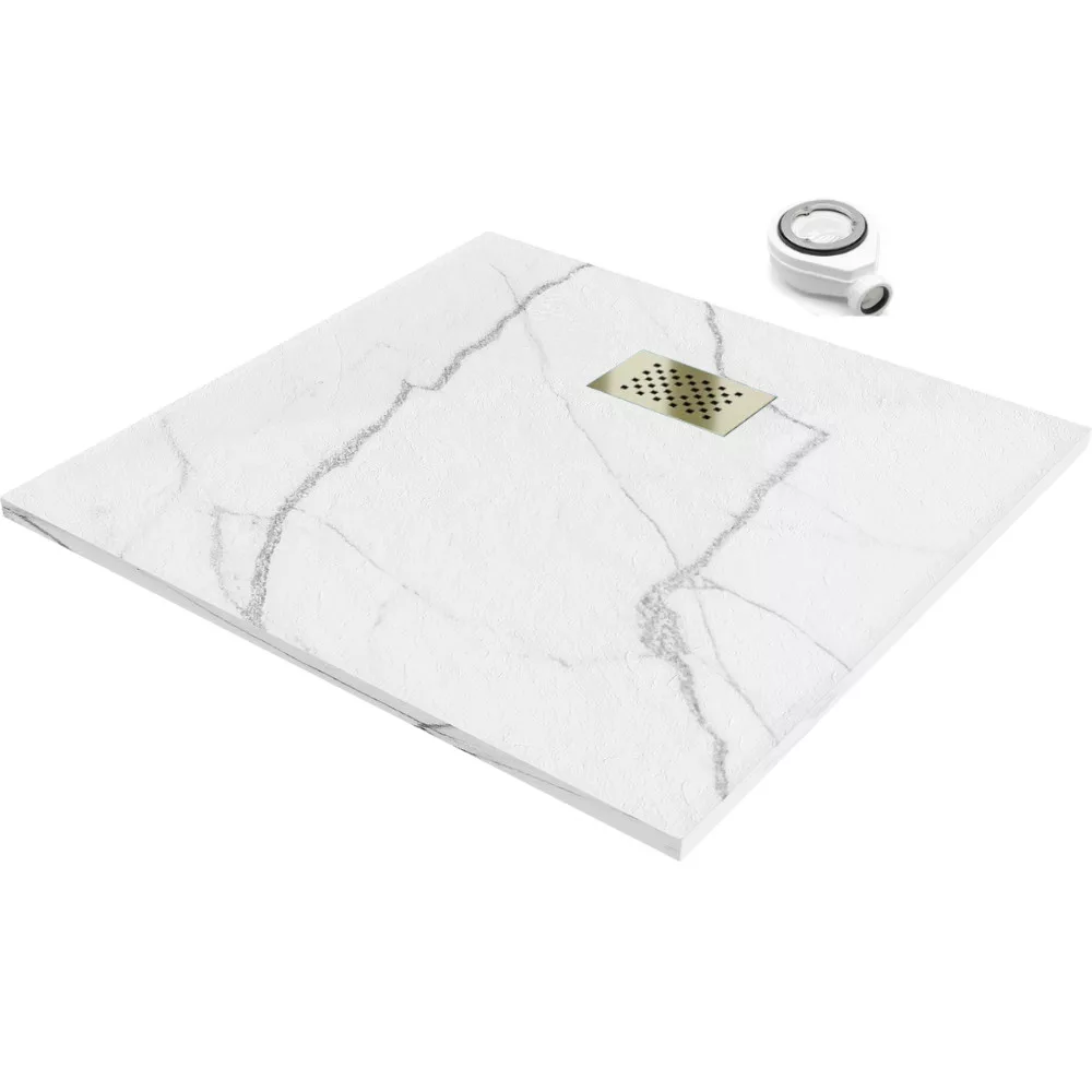 HD Marco White Marble 80x80 szögletes SMC zuhanytálca arany színű zuhanylefolyó ráccsal