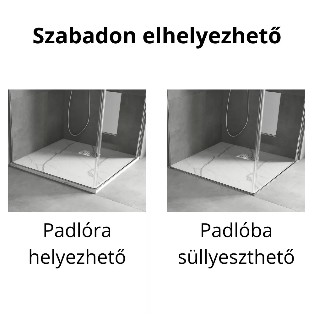 - Tartozékok: SMC kőhatású zuhanytálca, krómozott zuhanylefolyó rács, színazonos kőhatású SMC lefolyó takarófedél