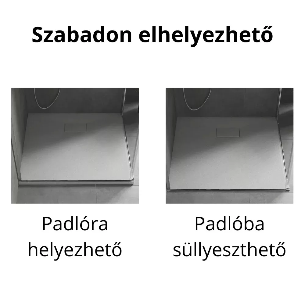- Tartozékok: SMC kőhatású zuhanytálca, színazonos kőhatású SMC lefolyó takarófedél, zuhanytálca szifon