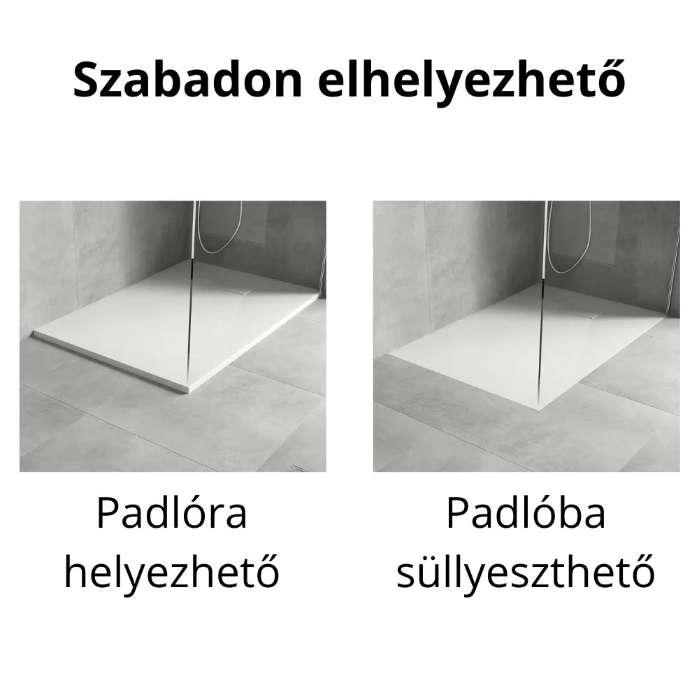 - Tartozékok: SMC kőhatású zuhanytálca, színazonos kőhatású SMC lefolyó takarófedél