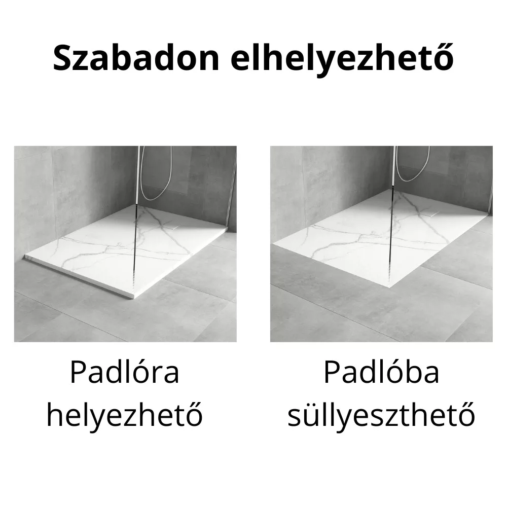 - Tartozékok: SMC kőhatású zuhanytálca, színazonos kőhatású SMC lefolyó takarófedél, zuhanytálca szifon