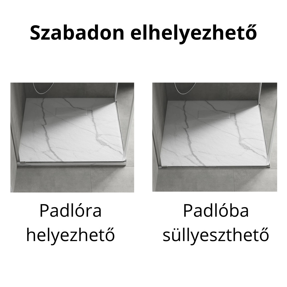 - Tartozékok: SMC kőhatású zuhanytálca, színazonos kőhatású SMC lefolyó takarófedél