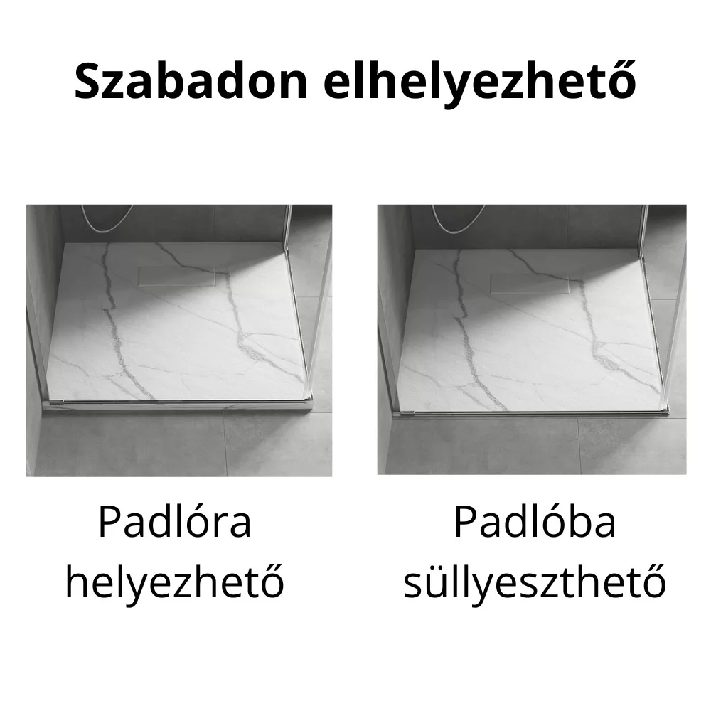 - Tartozékok: SMC kőhatású zuhanytálca, színazonos kőhatású SMC lefolyó takarófedél, zuhanytálca szifon