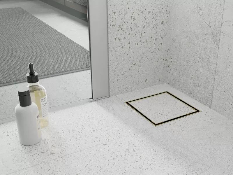 - csempézhető fényes arany zuhanyfolyóka rács