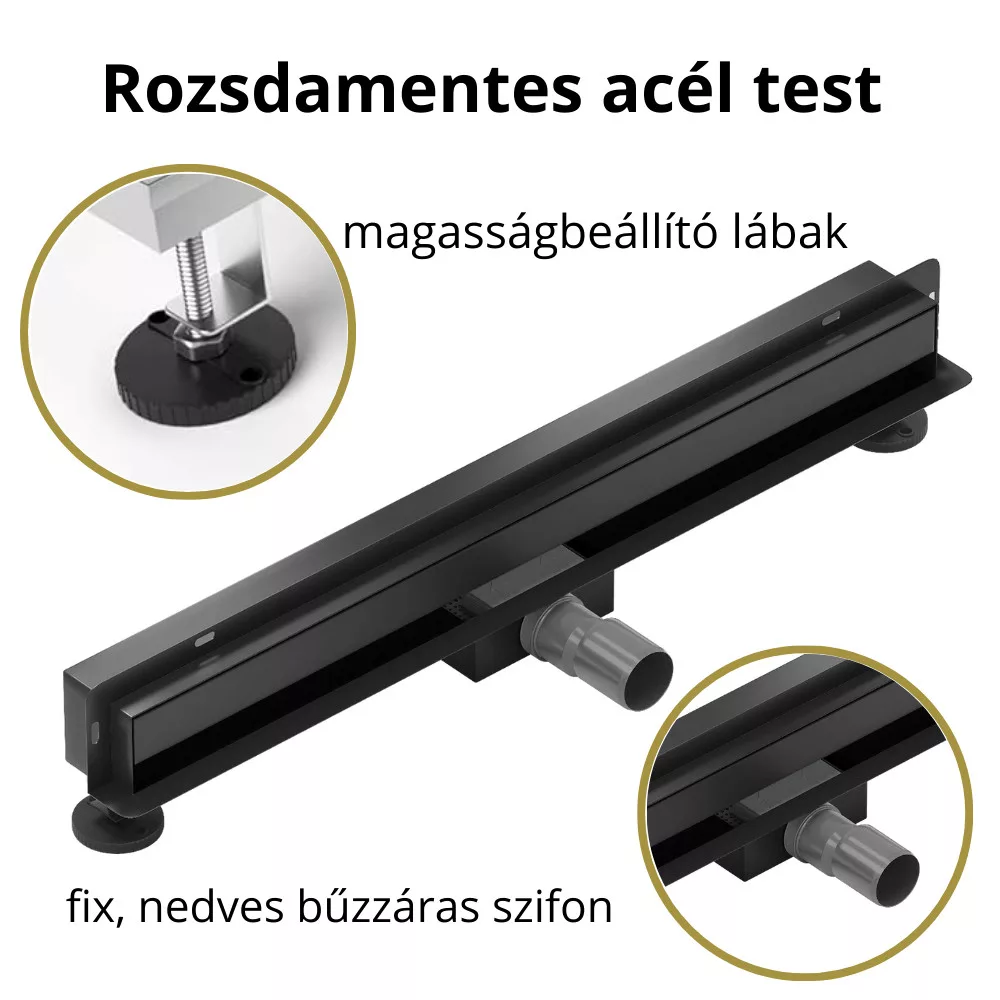 • rozdamentes acél (AISI 304) fekete zuhanyfolyóka test