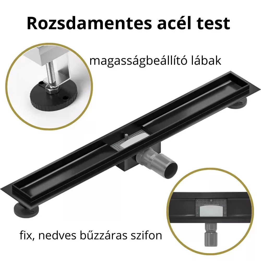 - rozdamentes acél (AISI 304) fekete zuhanyfolyóka test