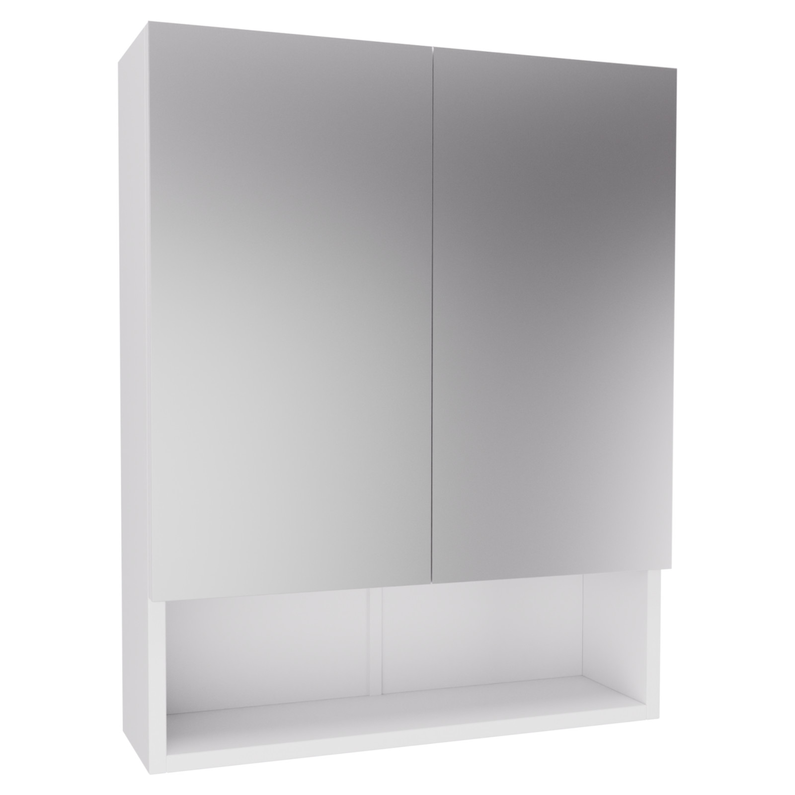 Saját márkás 60 cm széles fali tükrös szekrényünk, matt fehér színben, teljes kiterjedésű tükörrel rendelkező szekrény ajtókkal. A bútort lapra szerelt állapotban szállítjuk.