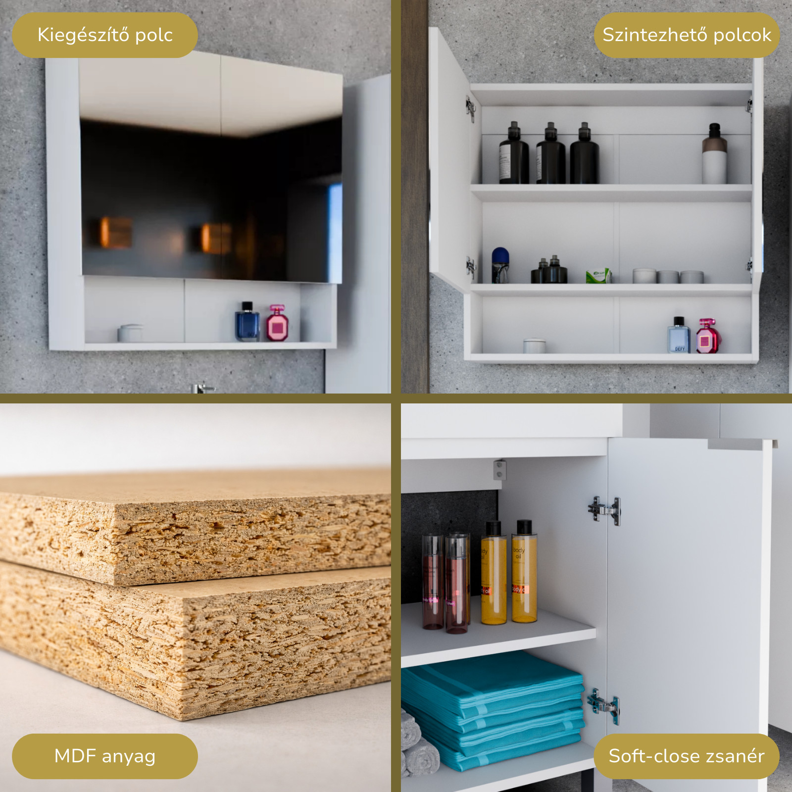 Monaco White 80 cm széles fürdőszobai tükrös szekrény