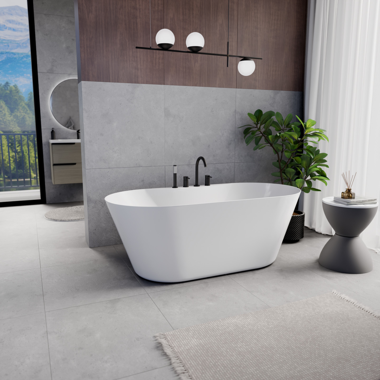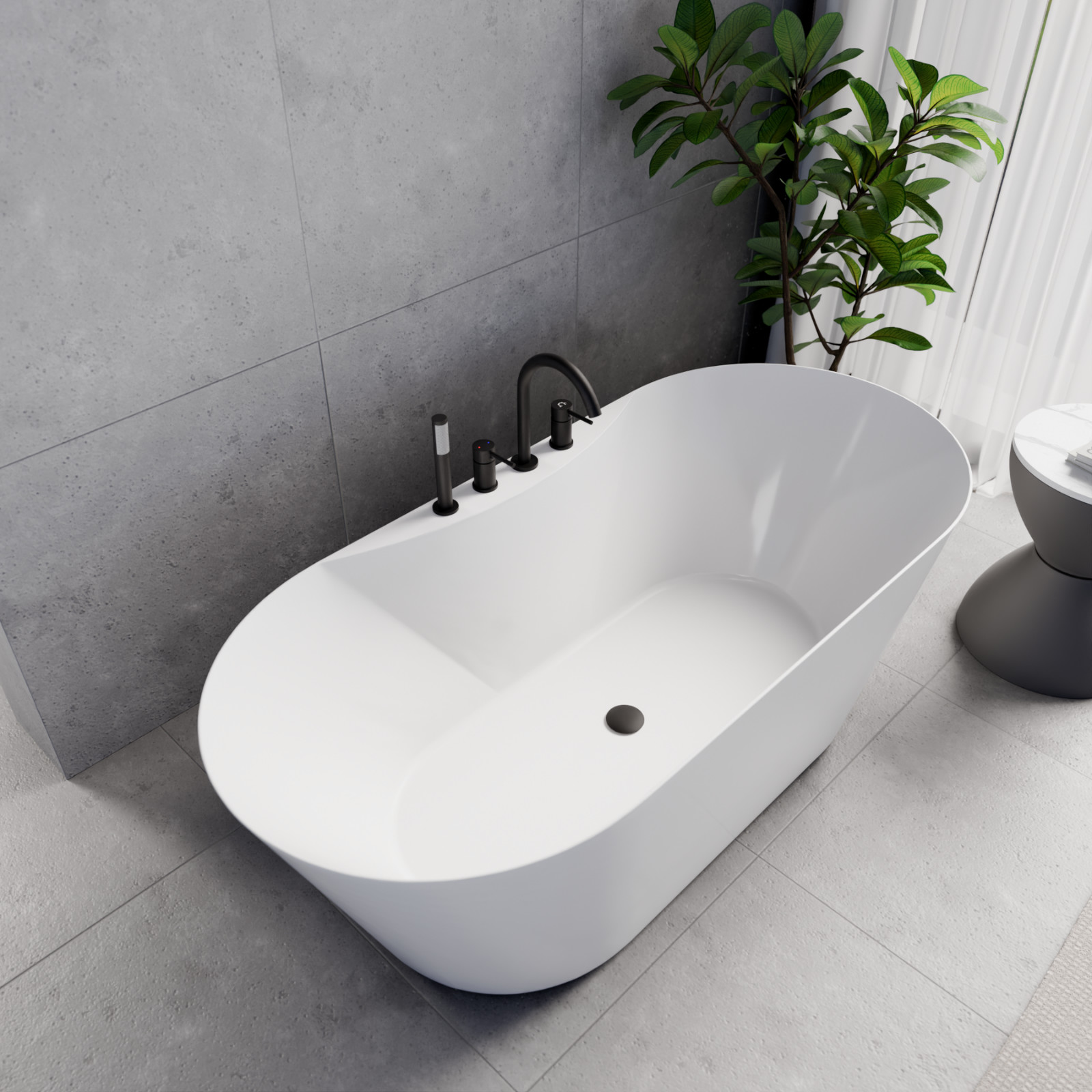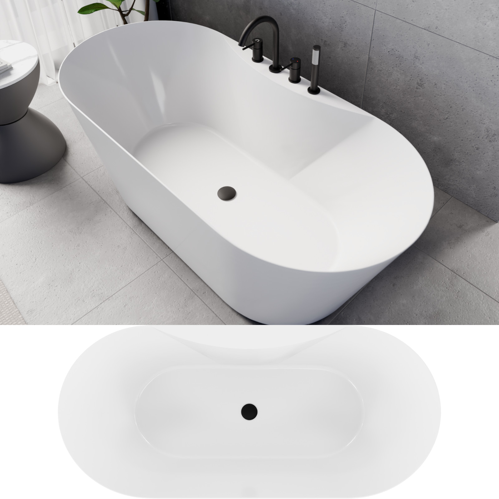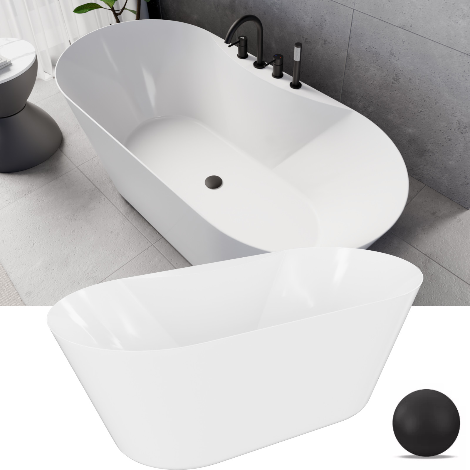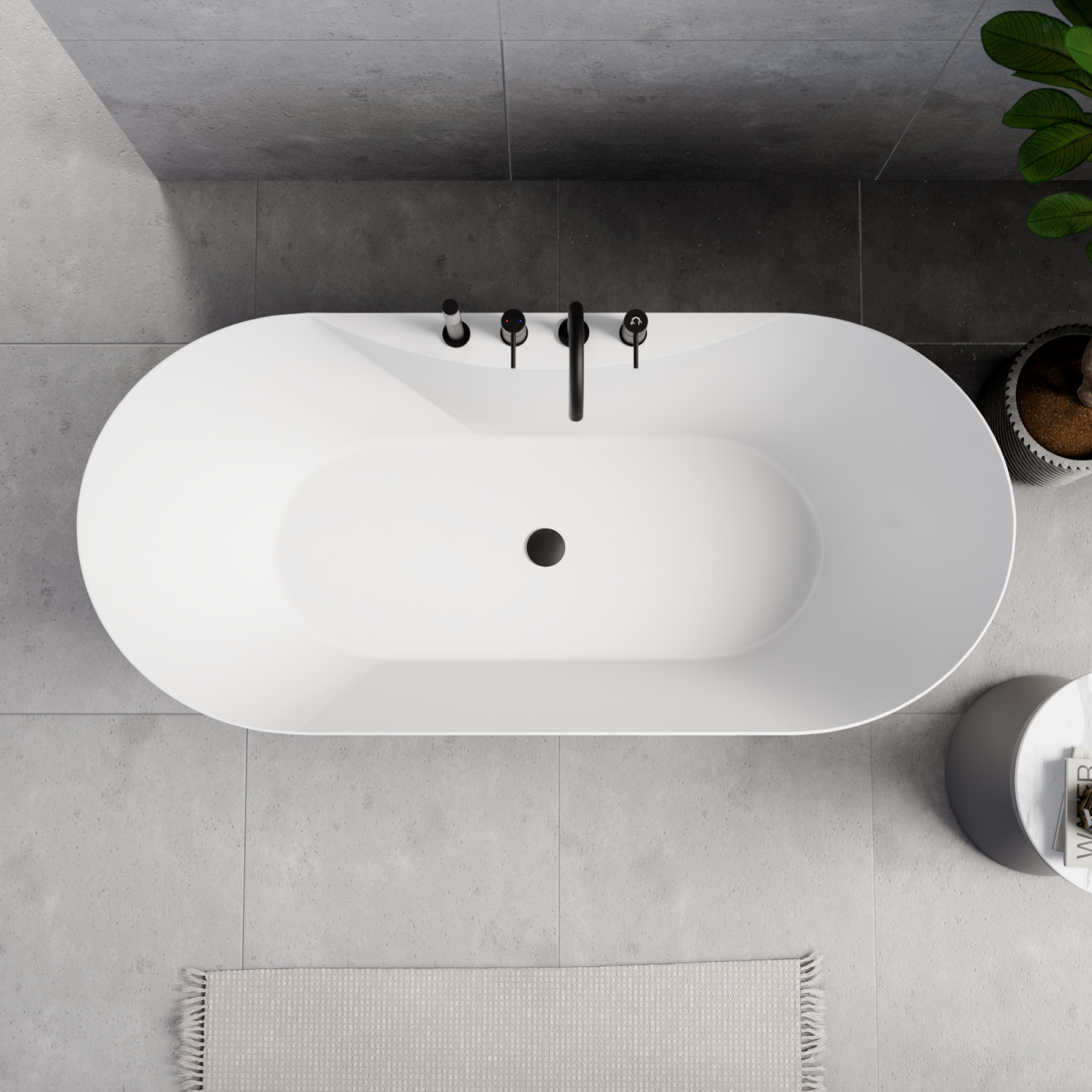 Mood ovális térben álló akril kád, 160 cm hosszú, matt fekete elemekkel
