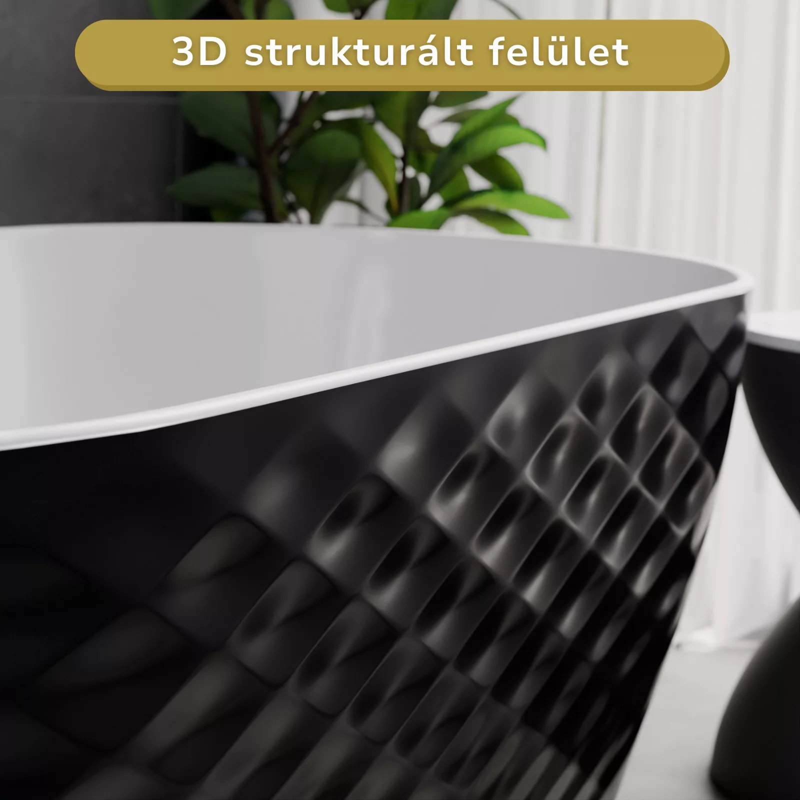 Naomi Black&White térben álló akril kád, 170 cm hosszú, fényes arany elemekkel